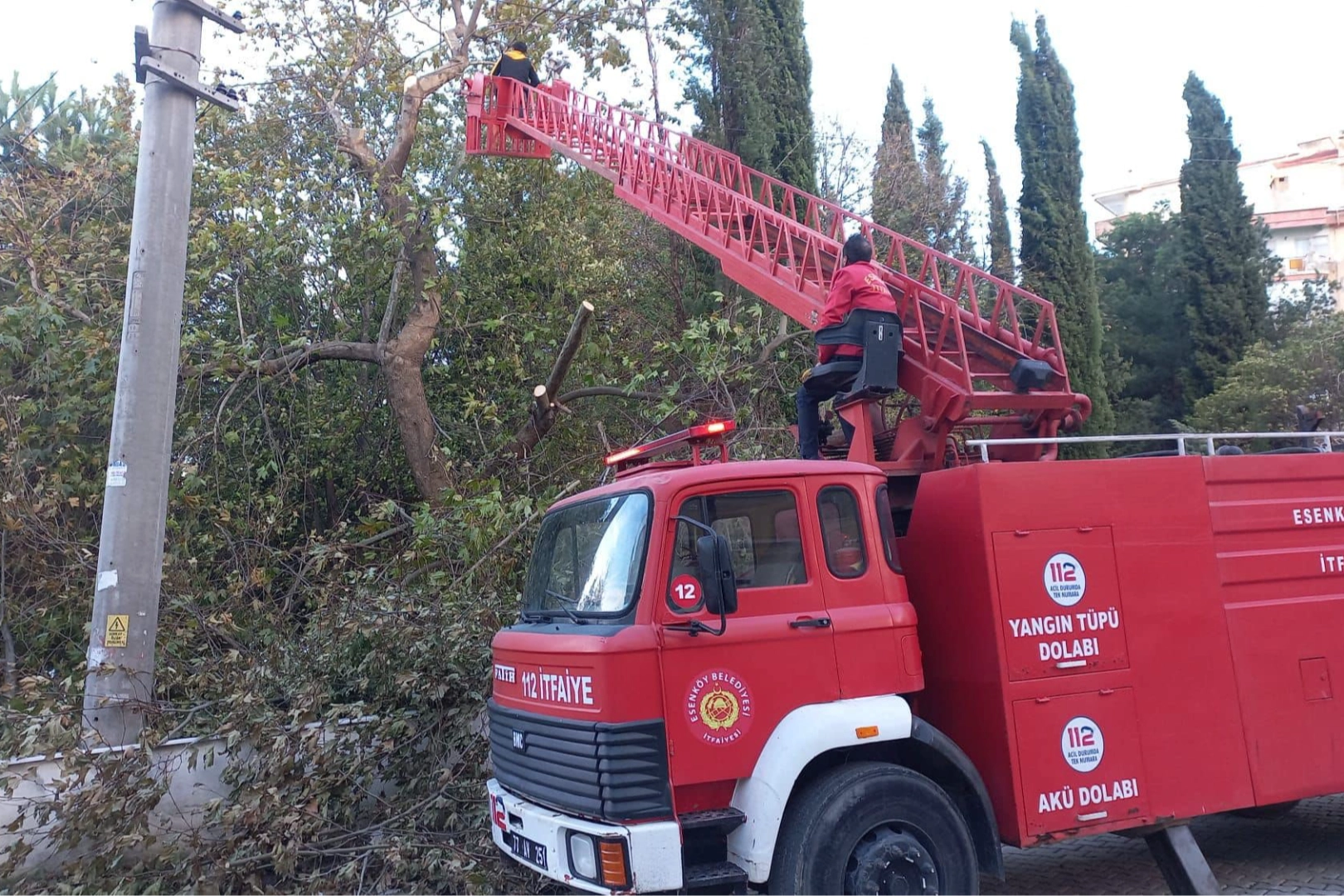 Esenköy Belediyesi İtfaiye Müdürlüğü’ne bağlı ekipler çalışmalarını kesintisiz sürdürüyor. Esenköy’de sahil mezarlığında bulunan ve elektrik tellerine değerek büyük risk oluşturan ağaç dallarının Tedaş ekipleri eşliğinde Esenköy Belediyesi İtfaiye Ekiplerince budaması gerçekleşti. Beldede özenli bir şekilde çalışmalarına devam eden ekipler işlerine büyük bir titizlik gösteriyor. Esenköy beldesinin sakinleri çalışmalardan memnun olduklarını dile getirdi. Esenköy Belediye Başkanı Mehmet Temel çalışmaları yerinde inceleyerek ekiplere işlerinde kolaylıklar diledi.