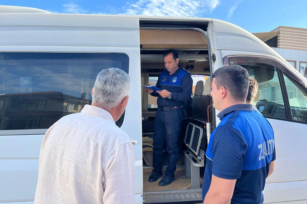 Öğrenci servislerini denetleyen ekipler, okul servislerinin yıllık çalışma ruhsatlarını, araç şoför tanıtım kartlarını, araç yolcu taşıma kapasitelerinin uygun olup olmadığını inceliyor.