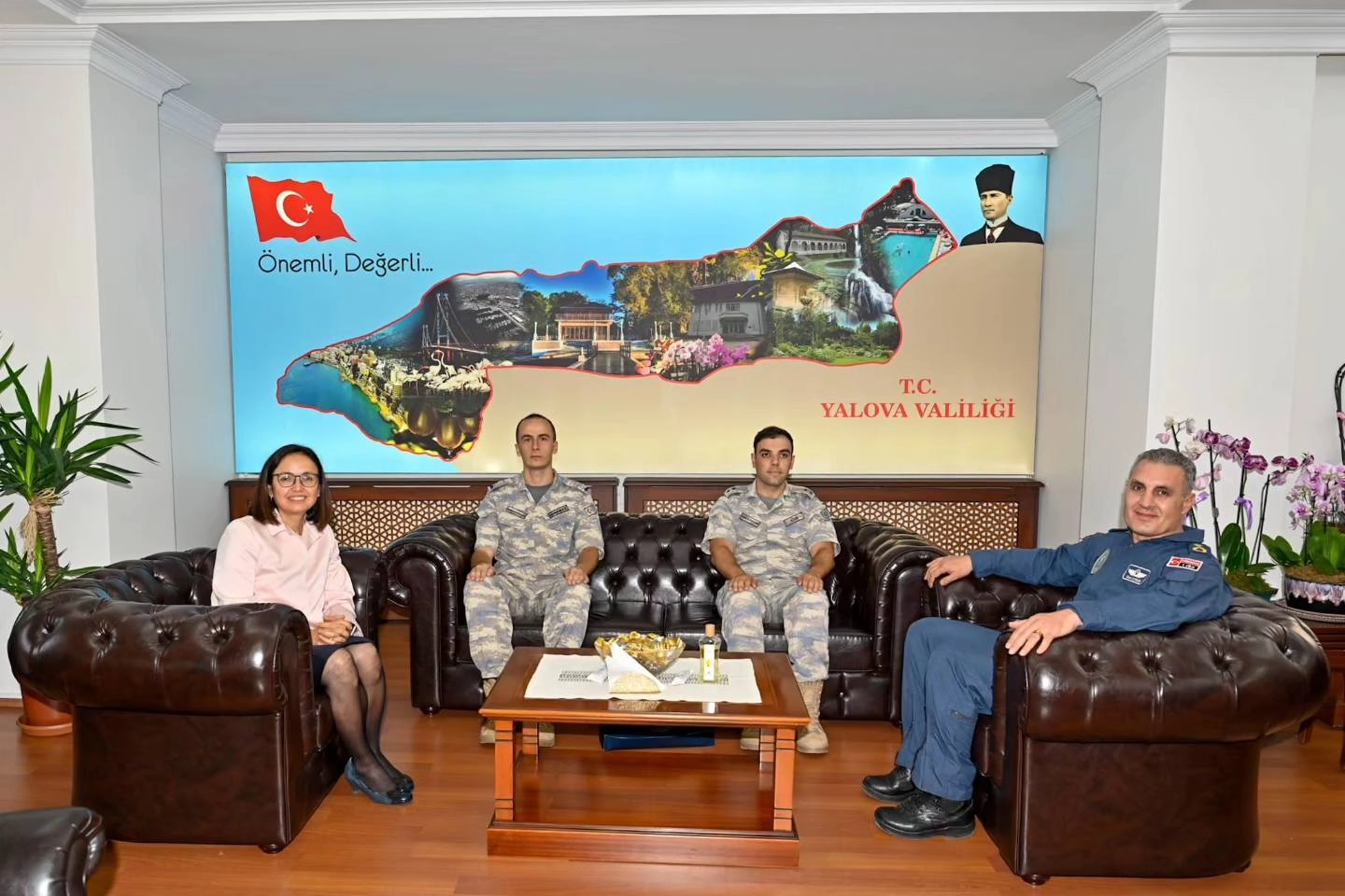 Yalova Valisi Dr.Hülya Kaya sırasıyla, Hava Meydan Komutanı Hv. Pilot Albay Okan Uygun, Minibüsçüler Odası Başkanı Erhan Baş ile oda yönetimi ve Cumhuriyet BaşsavcısI V.Cesim Eren ile Adalet Komisyonu Başkanı Şemsettin Dereli'yi makamında konuk etti.