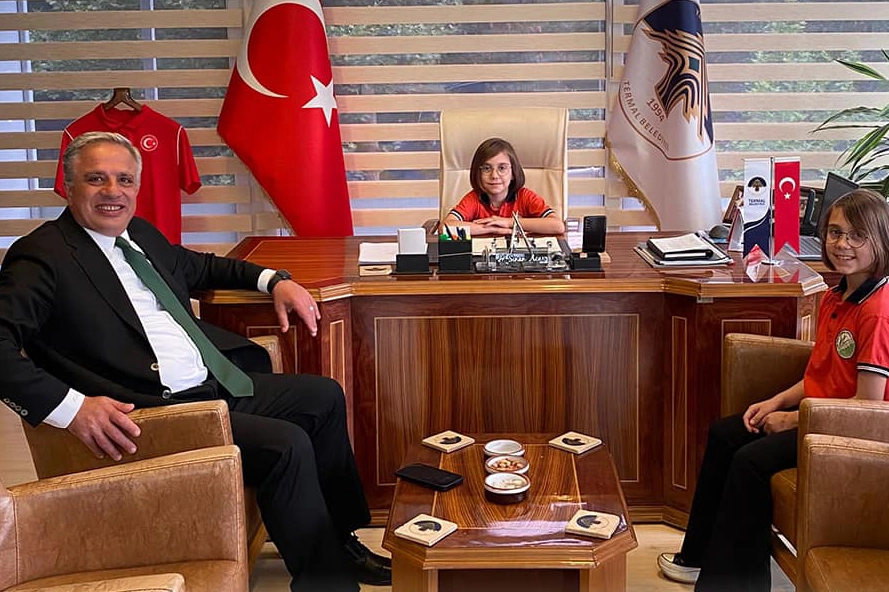 Törene katılan Termal Belediye Başkanı H. Sinan Acar, “23 Nisan, Türkiye Cumhuriyeti’nin temellerinin atıldığı, milletimizin egemenliğini ilan ettiği tarihi bir gündür. Bu günü çocuklarımıza armağan eden Ulu Önder Mustafa Kemal Atatürk’ü ve kahraman şehitlerimizi minnetle anıyoruz. Çocuklarımızın mutlu, huzurlu ve başarılı bir geleceğe sahip olması için çalışmaya devam edeceğiz” dedi. Başkan Acar koltuğunu çocuklara bıraktı Öte yandan Termal Belediye Başkanı H. Sinan Acar makamını Termal İlkokulu 3.sınıf öğrencileri Hira ve Sıla Kurtuluş’a bıraktı. Makama oturan minik öğrenciler kurum müdürlerini arayarak okullardaki öğrencilerin teneffüslerde oyunlar oynayabilecekleri alanlar yapmalarını istediler. Termal Belediye Başkanı H. Sinan Acar ise öğrencilerle uzun uzun sohbet etti.