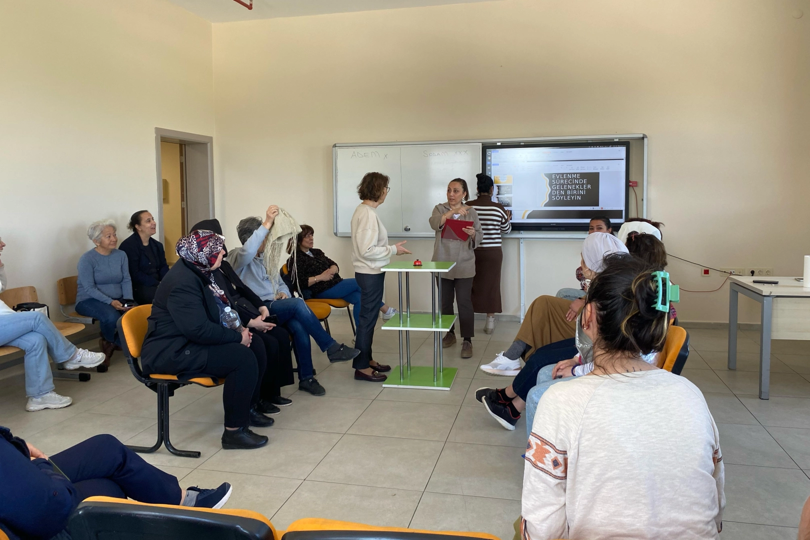 2025 Aile Yılı kapsamında düzenlenen Aile İletişim Atölyesi'nin bir parçası olarak gerçekleştirilen Aileler Yarışıyor yarışması, katılımcılara unutulmaz anlar yaşattı. ADEM-SODAM kursiyerleri ve eğitmenlerinden oluşan beşer kişilik iki grup, aile kavramı üzerine hazırlanan soruları yanıtlayarak hem eğlendi hem de bilgilerini tazeledi.