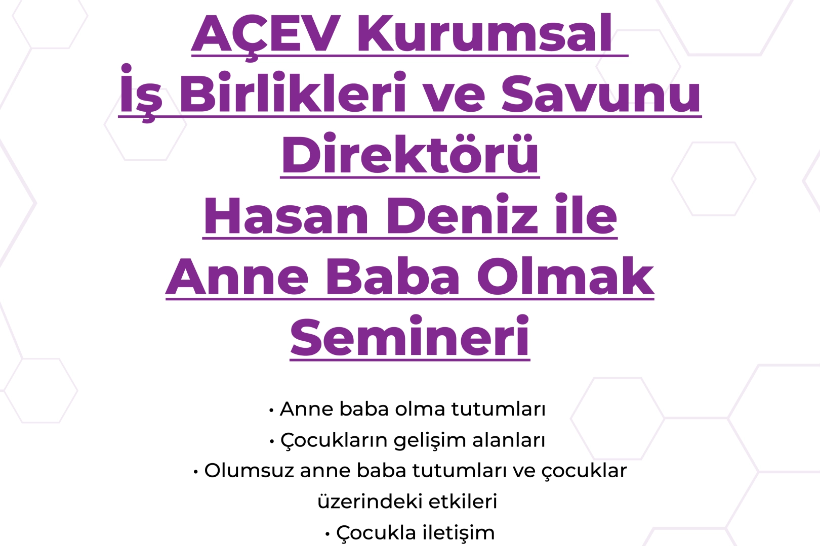 Uzman: Hasan Deniz (AÇEV- Kurumsal İşbirlikleri ve Savunu Direktörü), Tarih: 23 Mayıs 2025 Cuma, Seminer Saati: 10:00 – 12:00