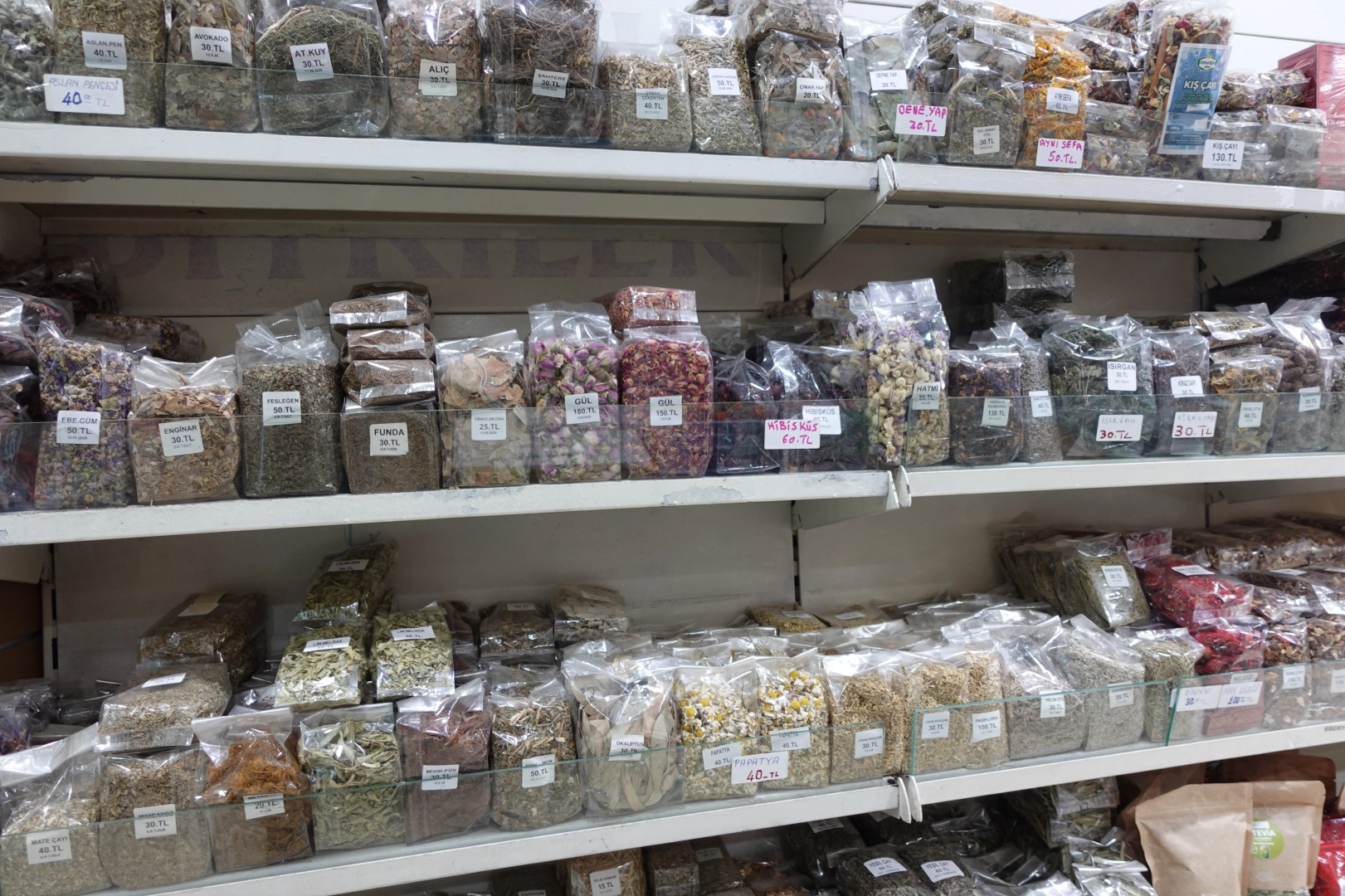 Raflarda yerini alan onlarca çeşit bitki çayı, hem kış aylarında bağışıklığı desteklemek isteyenlerin hem de doğal ürün tercih edenlerin gözdesi durumunda. Tezgahlarda; papatyadan hatmi çiçeğine, hibiskustan adaçayına, enginardan funda yaprağına kadar çok sayıda bitki çayı dikkat çekiyor. Her biri taze olarak satışa sunulan ürünlerin fiyat etiketlerinde 20 TL ile 180 TL arasında değişen seçenekler bulunuyor.