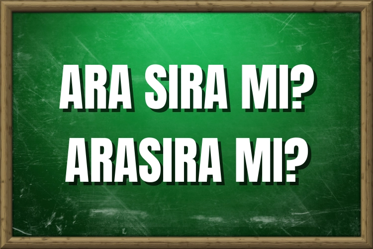 Ara sıra sözcüğü günlük hayatta sıklıkla kullanılan bir kelimedir. Bu kelimeyi günlük hayatta kendimizden veya başkalarından duyabiliriz. Kelimenin doğru yazımı ise oldukça önemlidir. Ara sıra kelimesi ara sıra şeklinde yazılır arasıra şeklinde yazımı yanlıştır. Ara sıra kelimesinin doğru yazılışı ara sıra şeklindedir. Bu şeklin dışındaki yazım türleri yanlış yazım olarak değerlendirilmektedir.