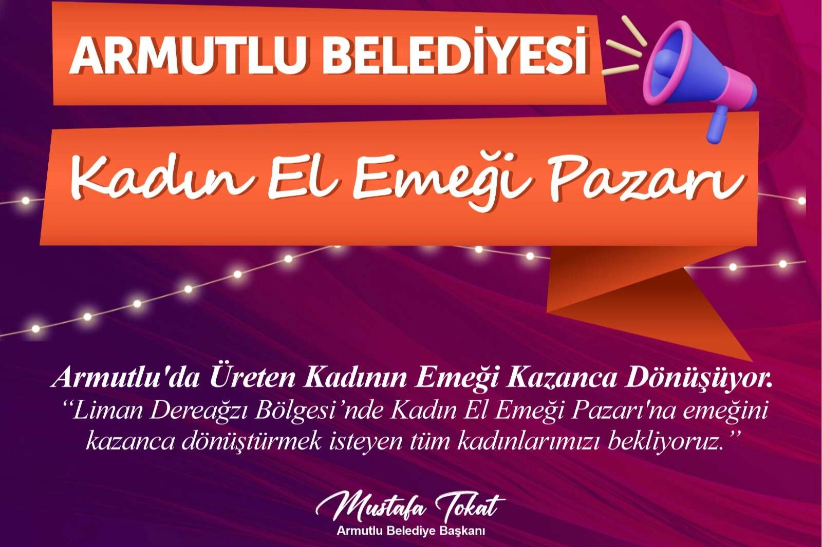 Liman Dereağzı Bölgesi’nde el emeği ürünlerini satmak isteyen kadınlar için Armutlu Belediyesi Kadın El Emeği Pazarı kurulacak. Pazarda ürünlerini satmak isteyen tüm kadınlar kayıtlarını Armutlu Belediyesi Sosyal Hizmetler Birimi’nden yaptırabilecekler. Armutlu Belediyesi sosyal medya hesabından yaptığı paylaşımda, Armutlu’da üreten kadının emeğinin kazanca dönüştüğünün altını çizerek, “Liman Dereağzı Bölgesi’nde Kadın El Emeği Pazarı’na emeğini kazanca dönüştürmek isteyen tüm kadınlarımızı bekliyoruz” ifadelerini kullandı.