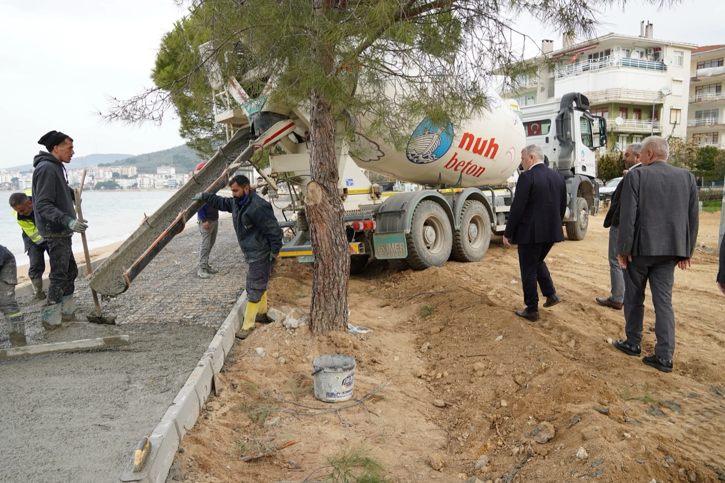 Öte yandan yaya ve bisiklet yolu projesinin aşamalarından olan baskı beton işlemi ekipler tarafından gerçekleştiriliyor. Armutlu Belediye Başkanı Cengiz Arslan da Meclis üyeleri ile birlikte çalışmaları sahada yakından inceleyerek çalışmaları gözlemledi.