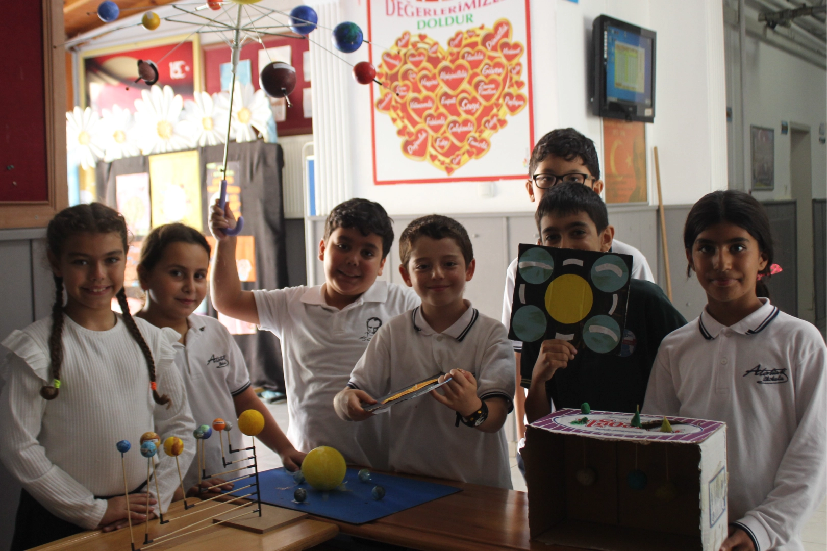 Uzay Haftası Etkinlikleri kapsamında gençlerin ve miniklerin bilim ve uzaya olan ilgisinin arttırılması hedefleniyor. Bu kapsamda Atatürk İlkokulu 4/E sınıfı öğrencileri Fen Bilimleri dersinde Güneş Sistemi konusu kapsamında eğlenceli bir etkinlik gerçekleştirdi ve konuyu pekiştirme fırsatı buldu.