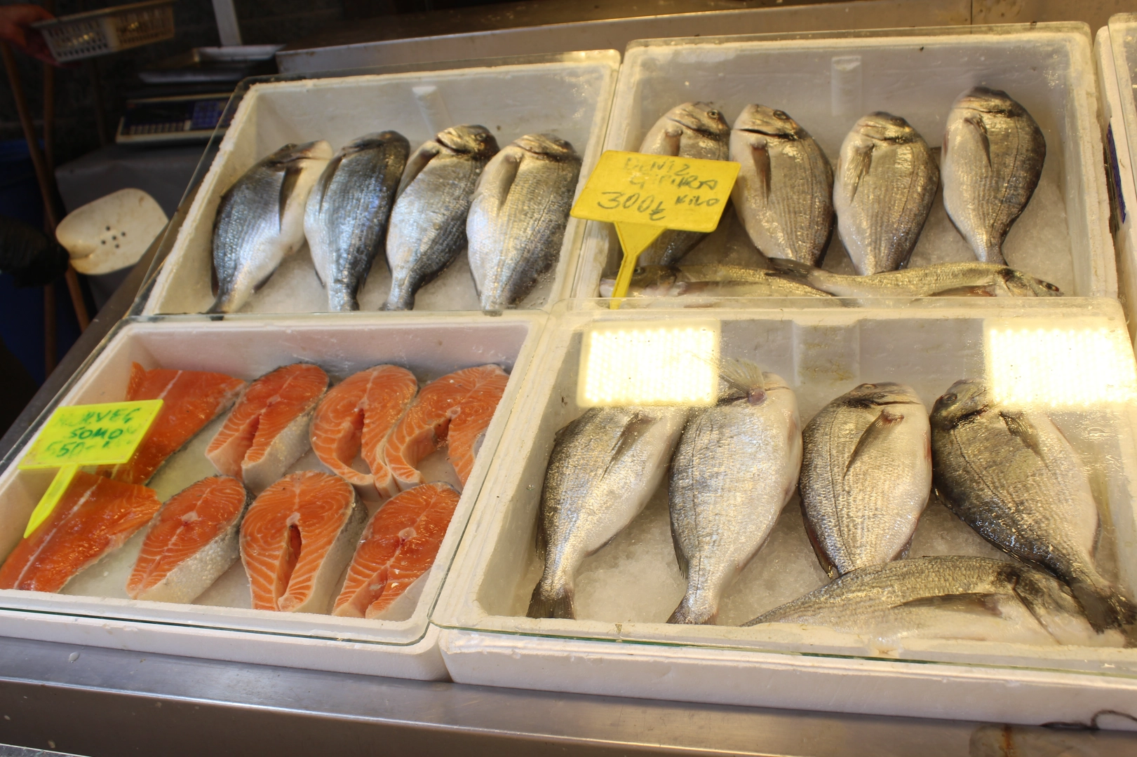 Geçtiğimiz hafta 200 TL olan Hamsi bu hafta 150 TL’ye düştü. İstavrit de aynı şekilde 200 TL’den 150 TL’ye indi. Tüketicilerin en çok tercih ettiği; Mezgit 200 TL, Sardalye 150 TL, Çipura 300 TL, Alabalık 180 TL ve Deniz Levrek 250 TL olarak kaldı.