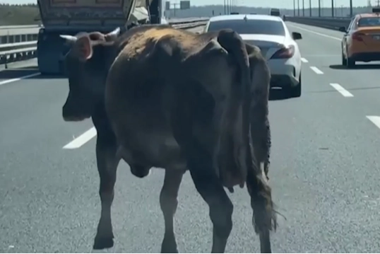 Günün yoğun saatlerinde yaşanan olayda, aniden karayoluna çıkan 3 inek araçların arasına daldı. Seyir halindeki sürücüler durmak zorunda kalırken, ineklerin trafikte ilerlemesi cep telefonu kameralarına yansıdı.