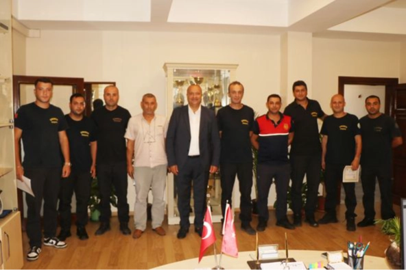 Çınarcık Belediye Başkanı Avni Kurt, YAKAB Handere çöplüğünde çıkan yangını söndürme çalışmalarına destekte bulunan itfaiye çalışanlarına teşekkür belgesi verdi.