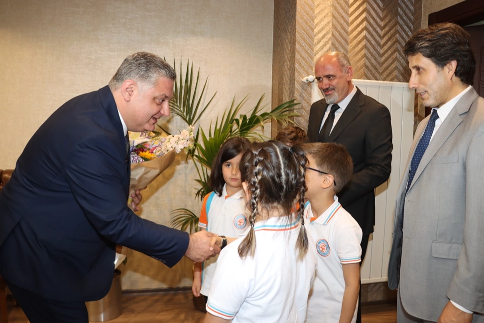 Yalova Belediye Başkanı Mehmet Gürel, başkanlık koltuğunu sırayla 4 ilkokul öğrencisine devretti, talimatları dinledi, taleplere yanıt verdi. 23 Nisan Ulusal Egemenlik ve Çocuk Bayramlarında geleneksel hale gelen, çocukların temsili olarak yönetici koltuğuna oturmaları töreninde Yalova Belediye Başkanı Mehmet Gürel, makamını bir süreliğine Yalova Suzan Tuna İlkokulu öğrencilerine teslim etti. Okul Müdürü Adem Aykan, Sınıf Öğretmeni Ahmet Aykut ile birlikte Zeynep Sabiha Aykut, Tanem Köse, Yiğit Yasir Canbaz ve Tuna Sevim makam arabasıyla Yalova Belediyesi’ne geldi. Özel kalem personeli ve ardından Yalova Belediye Başkanı Mehmet Gürel tarafından makamda karşılanan öğrenciler sırayla makam koltuğuna oturdu. Koltuğa sırayla oturan öğrenciler gerekli birimleri arayarak yapılması gerekenler hakkında müdürler ile görüştü.
