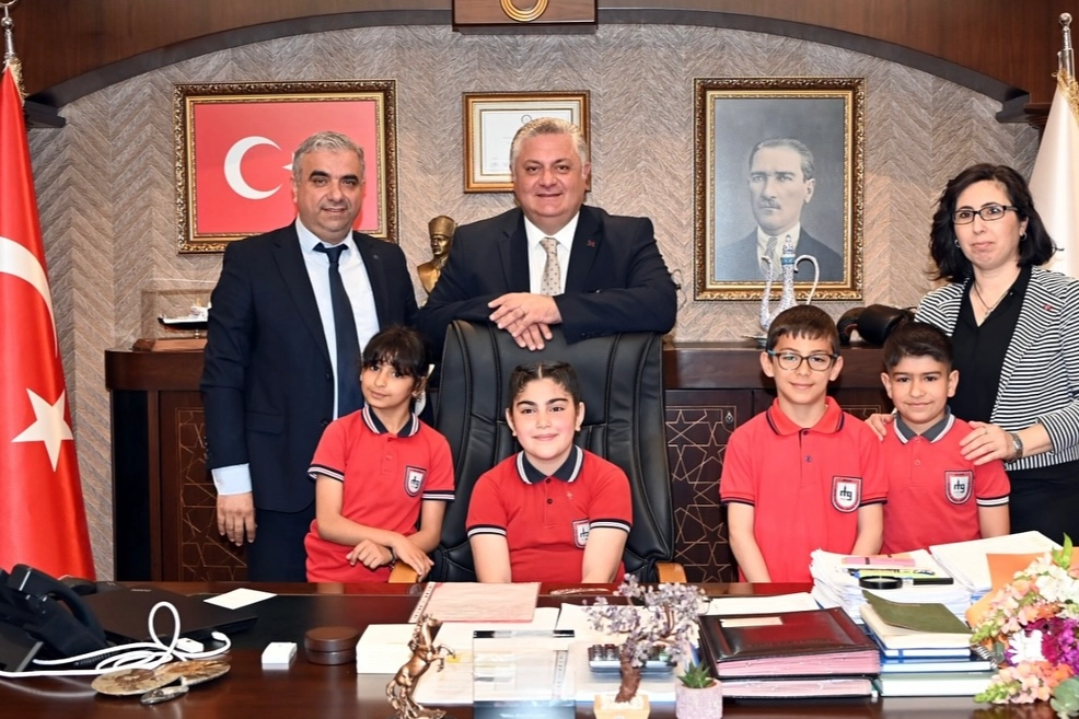 Ziyaret sırasında Başkan Gürel’e çiçek sunan öğrenciler, 23 Nisan’a özel hazırladıkları dilek ve taleplerini de ilettiler.