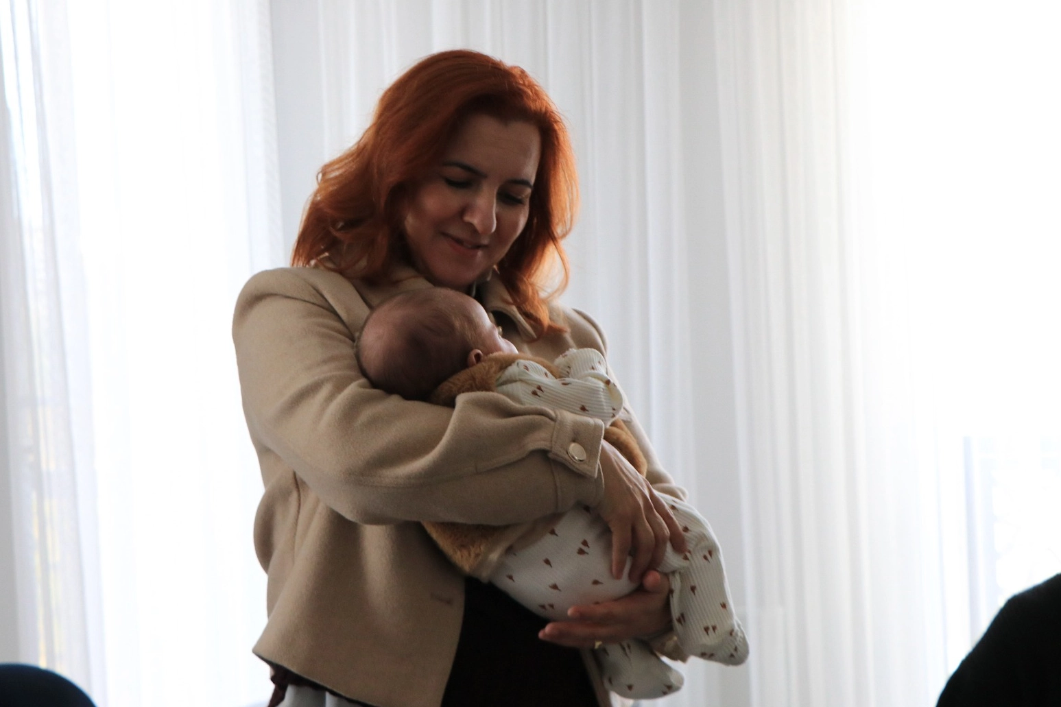 Çiftlikköy Belediyesi Sosyal Hizmetler Müdürlüğü ekibiyle birlikte aileleri ziyaret eden Bayan Yele, ailelerle sohbet ederek minikler için hazırlanan 'hoşgeldin bebek' setlerini takdim etti.