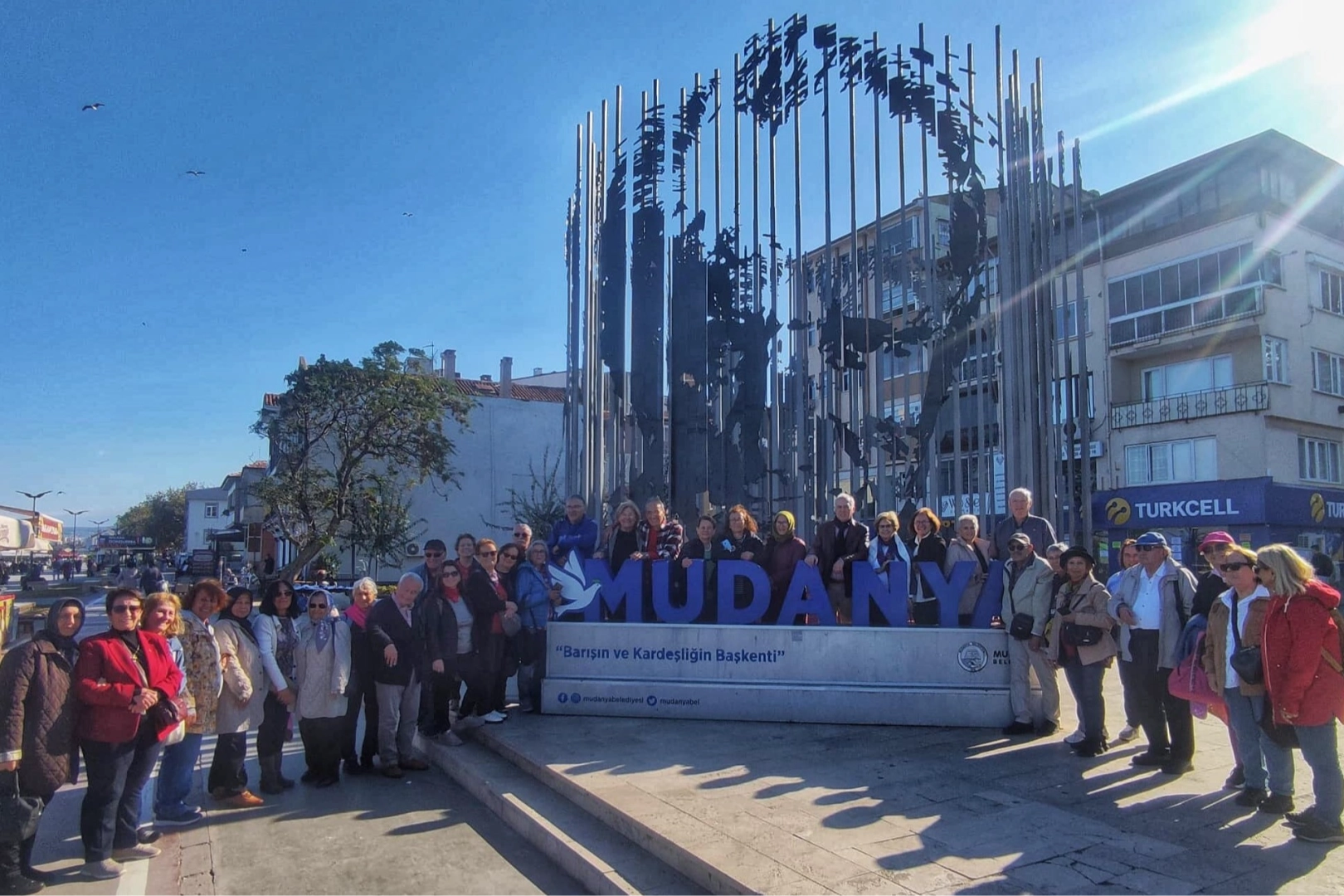 Ardından ise Türk Kurtuluş Savaşı’nın sonunda imzalanan Mudanya Mütarekesi’nin yapıldığı yer olarak tarihe geçen Mudanya’da, ilk olarak XIX. yüzyıl sonlarında Rus asıllı Aleksander Ganyanof’a ait, Mudanya Mütarekesi’nin imzalandığı bina olan Mudanya Mutareke Evi Müzesi, Kumkaya Kilisesi, Osmanlı evlerinin en güzel örneklerinin bulunduğu Mudanya’da Tahir Paşa Konağı’nı görüp fotoğrafladıktan sonra istirahat için Bursa’ya hareket edildi.