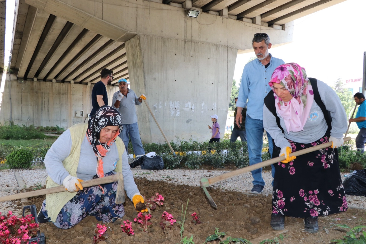Bir çiçek ilçesi olan Çiftlikköyümüzde ilk etapta Mokamp ve köprülü kavşak altındaki peyzaj alanlarımızı çiçeklendiriyoruz. Çiçeklendirme ve peyzaj çalışmalarımız ilçemizin farklı bölgelerindeki yeşil alanlarımızda devam edecek” diye konuştu.