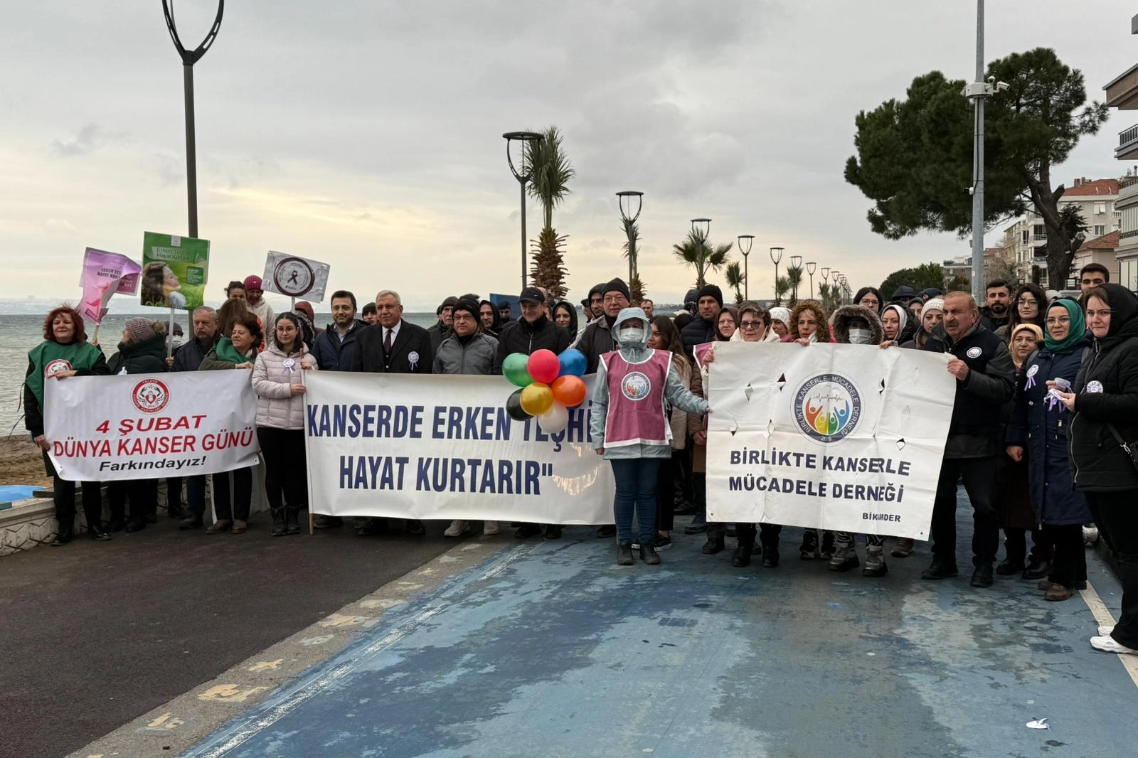 Katılımcılar yürüyüş boyunca ‘Kanserde erken teşhis hayat kurtarır’ yazılı pankart taşıdı.