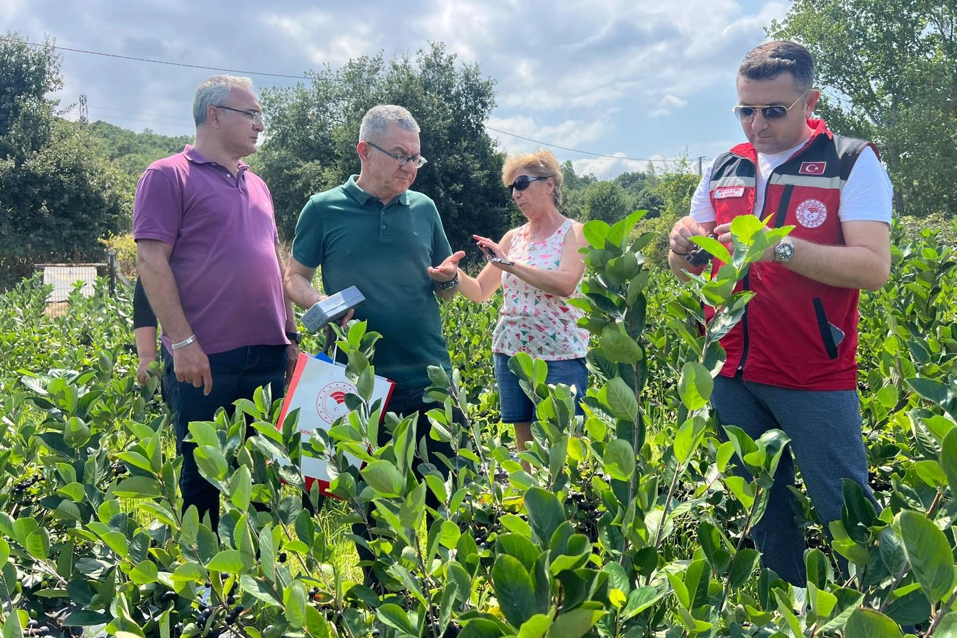 İl Müdür Yardımcısı İrfan Sakinci ve teknik sorumlu Şıh Mehmet Taşdemir’in de eşlik ettiği incelemede İl Müdürü Mustafa İlmeç üreticilerle sohbet ederek aronyanın brix değeri ölçümünü yaptı.