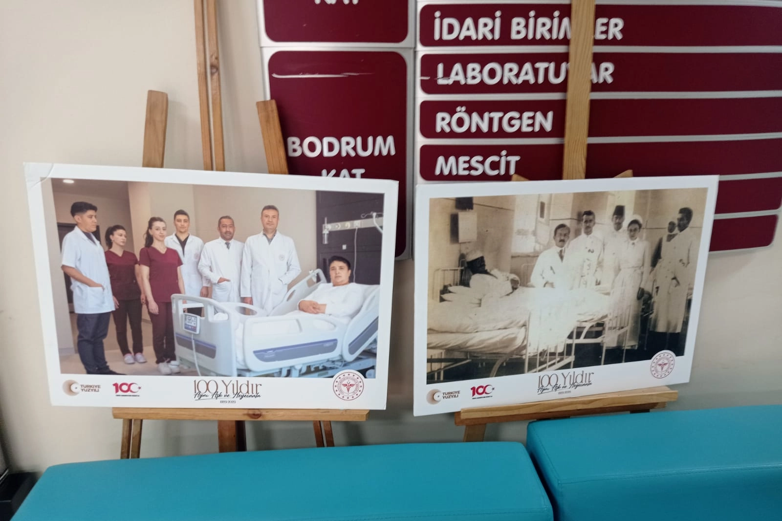 Cumhuriyetin ilk yıllarında hizmet veren sağlık çalışanlarına ve sağlık hizmetlerine ait fotoğrafların bugüne uyarlandığı "100 Yıldır Aynı Aşk ve Heyecanla" temalı sergi, ilk etapta Yalova Eğitim ve Araştırma Hastanesinde açıldı.