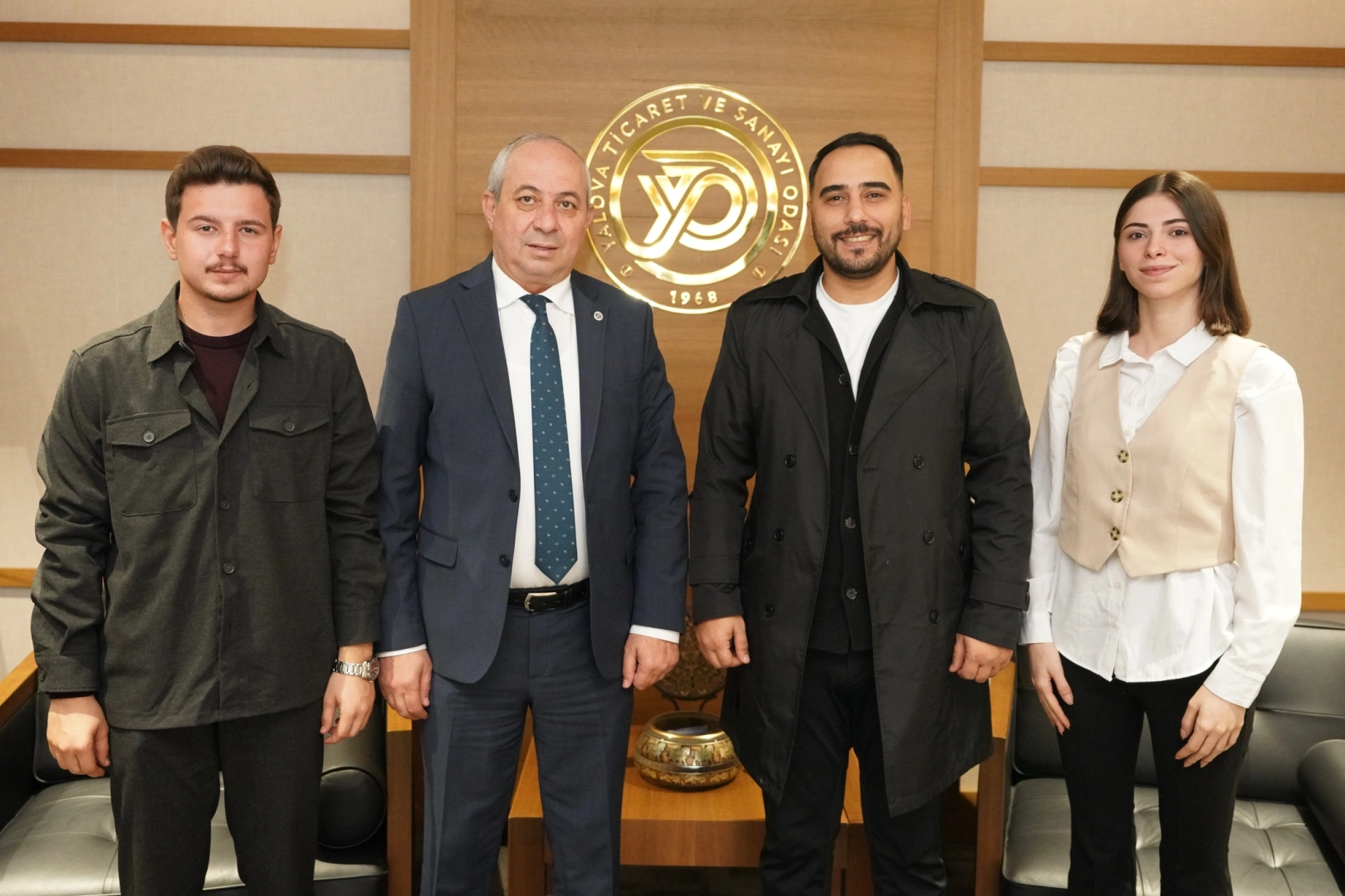 Yalova Genç Hukukçular Kulübü; sponsorluk desteği sağlayan SRG Group Yönetim Kurulu Başkanı Gökhan Sergin, Kulüp Başkanı Yunus Emre Taş ve Başkan Yardımcısı Berfin Soyalp ile birlikte YTSO Yönetim Kurulu Başkanı Cemil Demiryürek’i makamında ziyaret etti. Görüşmede, kulüp tarafından Yalova’ya kazandırılan “Genç Hukukçular Genç Mikrofon” etkinliği hakkında istişarelerde bulunularak etkinliğin kapsamı ve hedefleri üzerine değerlendirmeler yapıldı. Nazik ziyaretleri ve şehrimizin gençlik çalışmalarına sağladıkları katkılar nedeniyle Yalova Genç Hukukçular Kulübü temsilcilerine teşekkür eden Demiryürek, gençlere çalışmalarında başarılar diledi ve tebriklerini iletti. Görüşme, günün anısına çekilen toplu hatıra fotoğrafının ardından iyi dilek temennileri ile birlikte sona erdi.