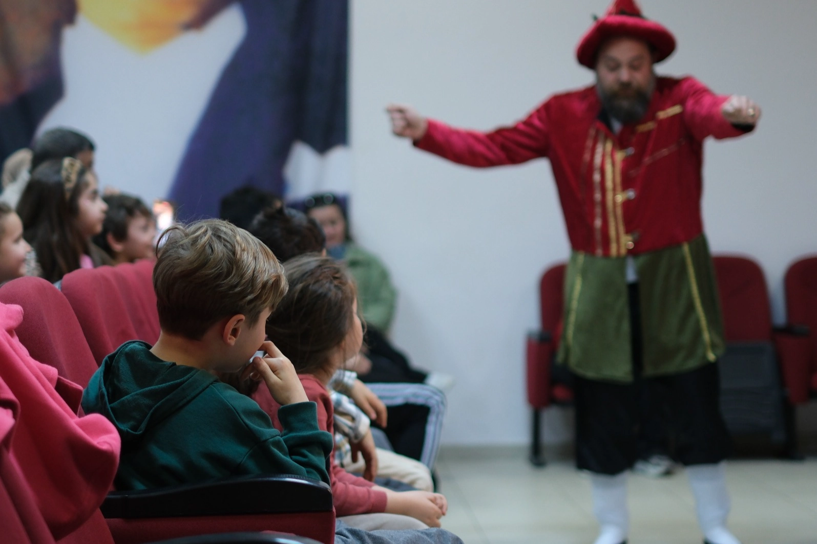 Emre Karaoğlu’nun hem tasvirlerini yaptığı hem de hayali olarak can verdiği ‘Dev Gölge Karagöz İle Hacivat’ oyunu, ramazan ayı boyunca dört kez sahne alarak çocuklara keyifli anlar yaşattı.
