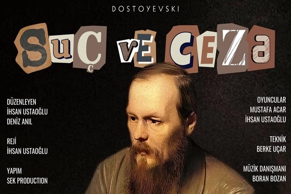 Edebiyatın başyapıtlarından olan Dostoyevski’nin yazdığı Dünya genelinde en çok okunan ve satılan eseri olarak bilinen Suç ve Ceza da insanı tüm yönleriyle tahlil eder. Romanın baş karakterleri Raskolnikov ve Petroviç’i ele alarak tiyatroya uyarlanmıştır. Bu iki kişilik muhteşem oyunda, Suç ve Ceza kavramını tüm yönleriyle ele alınmıştır.Suç nedir? Ceza nedir? Nerede başlar? Nerede biter? Tüm bunlar sıradan insanlar ve dahi insanlar örnek verilerek anlatılır. Türkiye’de bir ilk olan bu oyunun yapımını Sek Production, organizasyonunu ise Chaplin Sanat üstleniyor.
