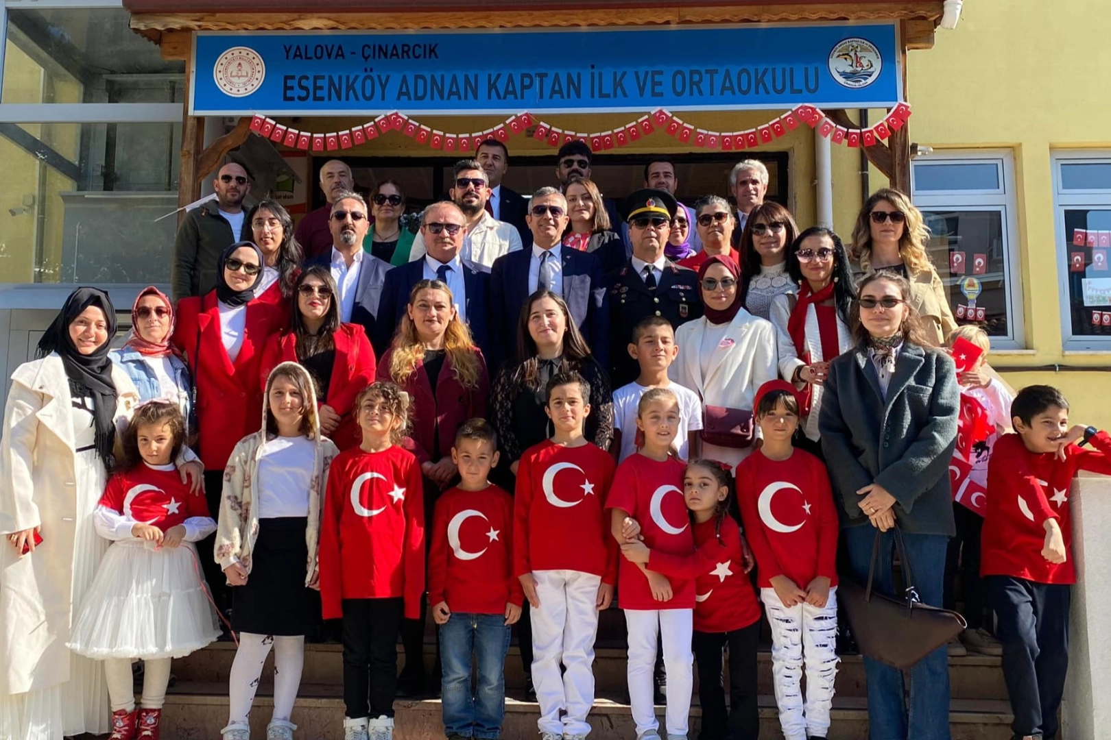 Esenköy Adnan Kaptan İlk ve Ortaokulu öğretmen ve öğrencileri Cumhuriyet Bayramı 101. Yılı Kutlamaları kapsamında unutulmaz bir törene imza attı. Okul bahçesinde gerçekleştirilen törene Esenköy Belediye Başkanı Mehmet Temel, Belediye Meclis Üyesi Seda Alacalı, Yalova İl Genel Meclis Üyesi Mehmet Kara, Jandarma Komutanı Gürkan Demir, Adnan Kaptan İlk-Ortaokulu Müdürü Eyyüp Mutlu ile birlikte çok sayıda veli de katılım gösterdi.