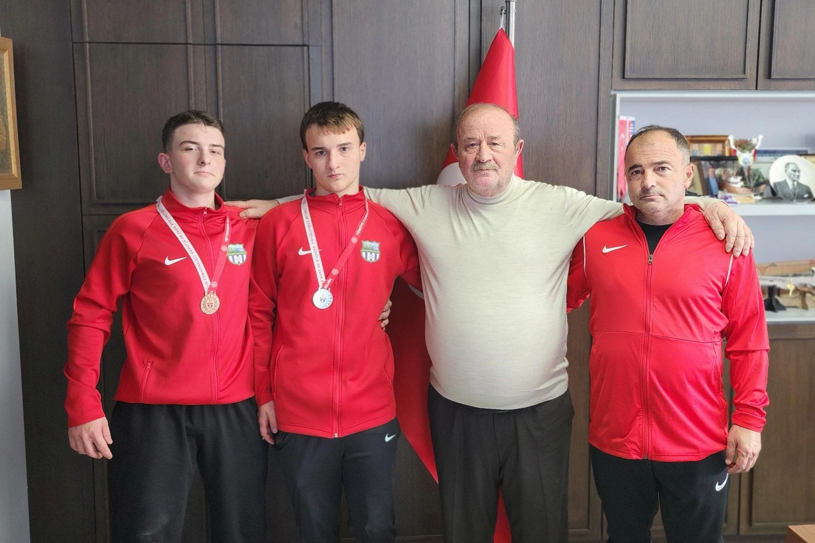 Yalova Okullar Arası İl Şampiyonası’nda başarı elde ederek madalya kazanan genç sporcular, antrenörleri Cengiz Küçük ile birlikte Esenköy Belediye Başkanı Mehmet Temel’i makamında ziyaret ederek mutluluklarını paylaştılar. Başkan Mehmet Temel, genç sporcuları tek tek tebrik ederek başarılarının devamını diledi. Başkan Temel ziyaret sonrası yaptığı açıklamada “Esenköy’ün adını sportif başarılarla duyuran tüm evlatlarımızı yürekten kutluyor, emeği geçen hocalarımıza teşekkür ediyoruz” dedi.
