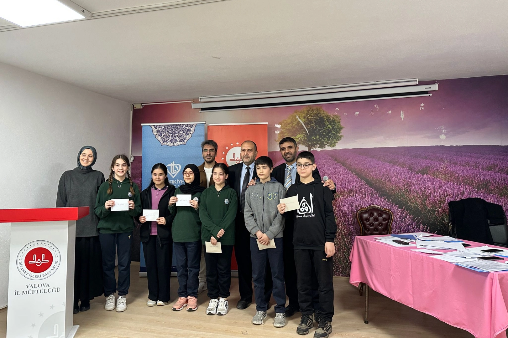 Dereceye giren öğrencilere Yalova İl Müftülüğü’nce çeşitli hediyeler verildi.