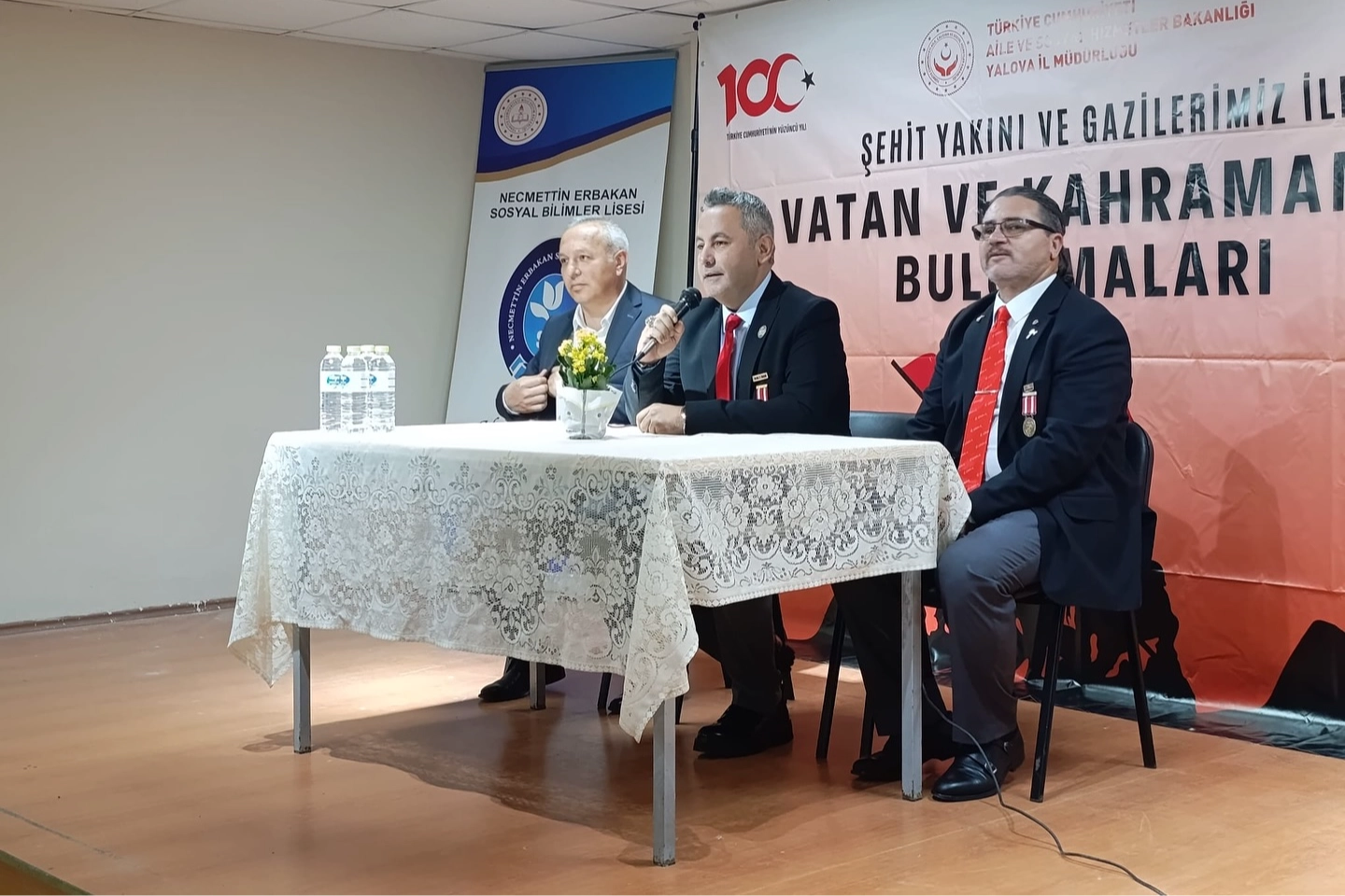 Türkiye Harp Malulü Gaziler, Şehit Dul ve Yetimleri Derneği Yalova Şubesi tarafından organize edilen “Vatan ve Kahramanlık Buluşmaları” programı kapsamında gaziler, Necmettin Erbakan Sosyal Bilimler Lisesi öğrencileriyle buluştu. Etkinlikte Gazi Özcan İla, Malul Gazi Hilmi Erkan Kocabaş ve Malul Gazi Doğan Uygun, öğrencilerle kahramanlık dolu anılarını paylaştı.