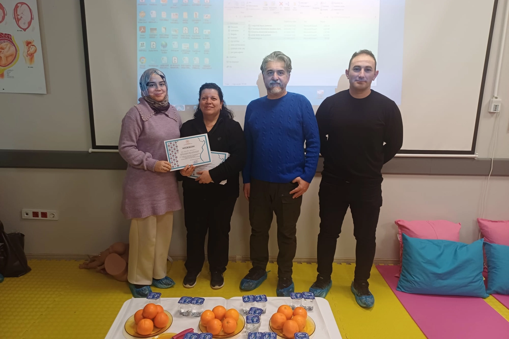 Eğitimde baba adaylarına; Bebek bağlanması, gebelikte ve lohusalıktaki duygu durum değişiklikleri, yenidoğan bebeğin özellikleri ve bebek bakımı, gebelikte, doğumda ve doğum sonunda eş desteğinin önemi hakkında bilgiler aktarıldı. Gebe Okuluna katılan anne ve baba adayları akıllarına takılan soruları uzmanlara yöneltme ve cevap alma şansı da buldular. Eğitim sonunda anne ve baba adaylarına katılım belgeleri takdim edildi.