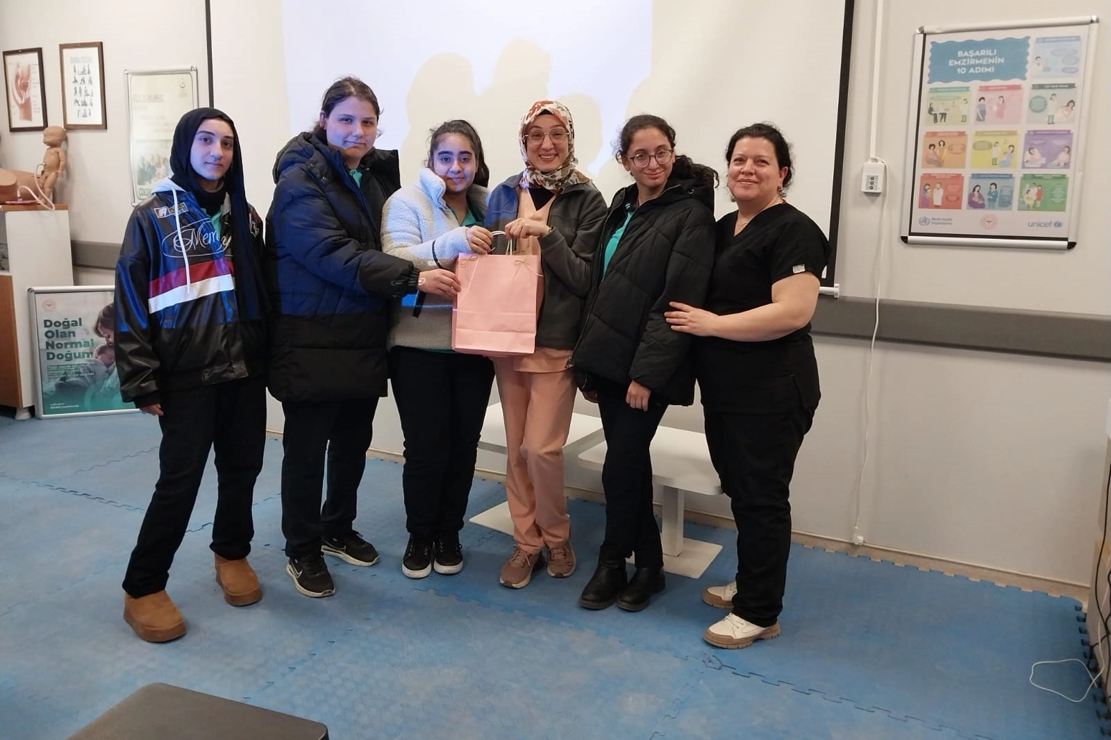 Katılımcılar, bu anlamlı hediyeler ve sağlanan bilgiler için teşekkür etti. Gebe Okulunda eğitimlerin tüm hızıyla devam ettiğini belirten yetkililer, tüm anne adaylarını programa katılmaya davet etti.