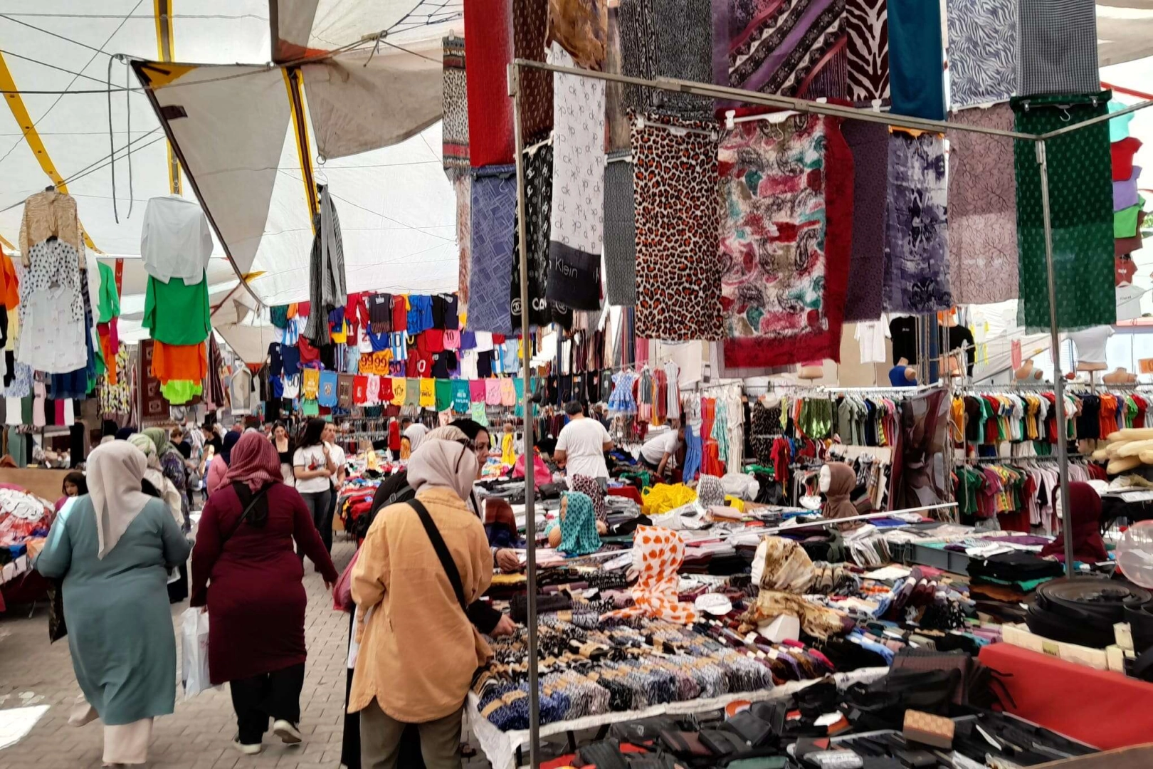 Yalova’nın Çiftlikköy ilçesinde her pazartesi günü kurulan Sosyete Pazarı, giysi, ayakkabı başta olmak üzere birçok ürünü tezgahlarında bulundurarak vatandaşların ilgisini çekmeye devam ediyor. Tezgahlardaki ürünlere Kurban Bayramı’ndan sonra zam geldiğini ifade eden pazar esnafları satışların fazla olmadığına dikkat çekti. Sosyete Pazarı’nda erkek-kadın tişörtleri 100-150 TL, çocuk kıyafeti (takım) 100 TL, pantolonlar 150 TL, kadın elbiseleri 100-350 TL, erkek eşofman takımı 750 TL, ayakkabılar 300 TL, terlikler 40-170 TL, çantalar 70 TL’den başlayan fiyatlar ile satışa sunuluyor.