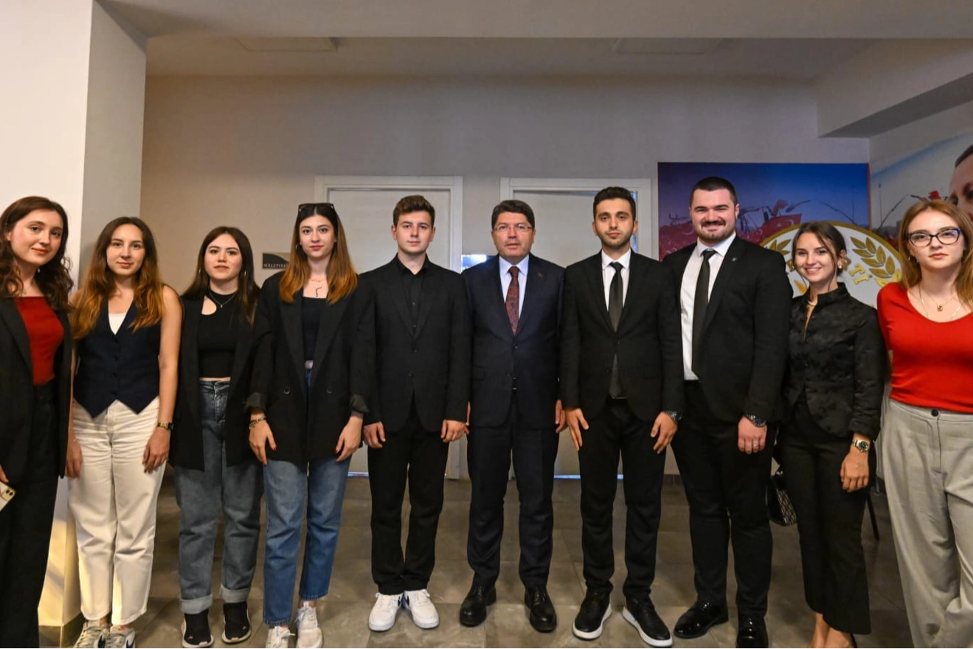 Adalet Bakanı Yılmaz Tunç, geçtiğimiz günlerde Yalova’ya gelerek, yoğun bir katılım ile birlikte Yalova Adalet Sarayı’nın açılışını gerçekleştirmişti. Açılışın ardından, yeni binayı gezerek bilgi alan ve incelemelerde bulunan Bakan Tunç’a, Yalova Üniversitesi Genç Hukukçular Kulübü yönetimi de eşlik etti. Genç Hukukçular Kulübü burada aynı zamanda da gündeme dair sorunları ve düşüncelerini Adalet Bakanı Yılmaz Tunç’a aktararak görüş alışverişlerinde bulundu. Bakan Tunç, genç hukukçuların sorularını ve önerilerini dikkatle dinleyerek sıcak bir şekilde karşılık verdi. Kulüp yönetimi, Bakan Tunç’un Yalova Üniversitesi’ne gelmesinin, genç hukukçuların kariyer gelişiminde ve hukuki bilgi birikimlerinin artırılmasında önemli bir katkı sağlayacağını ifade ederek üniversiteye davet etti. Gerçekleştirilen görüşme toplu hatıra fotoğrafı çekilmesi ile birlikte son bulurken, genç hukukçular Bakan Tunç’a ilgi ve alakaları adına teşekkürlerini iletti. Bakan Tunç ise eğitim ve meslek hayatlarında gençlere başarılar diledi.
