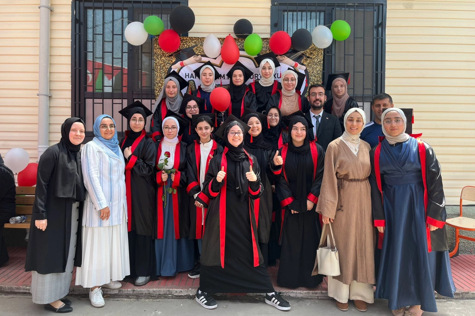 Yalova Hafız Kız İmam Hatip Ortaokulu bahçesinde 2023-2024 Eğitim-Öğretim Yılı 8’inci sınıf öğrencileri için mezuniyet töreni gerçekleştirilirken, 6’ncı sınıftan hafızlığı bitiren 14 öğrenci için hafızlık bitirme töreni düzenlendi. Törene Yalova İl Müftüsü İlyas Yılmaztürk ve Okul Müdürü Mehmet Tatar başta olmak üzere öğretmenler ve öğrenciler katıldı.