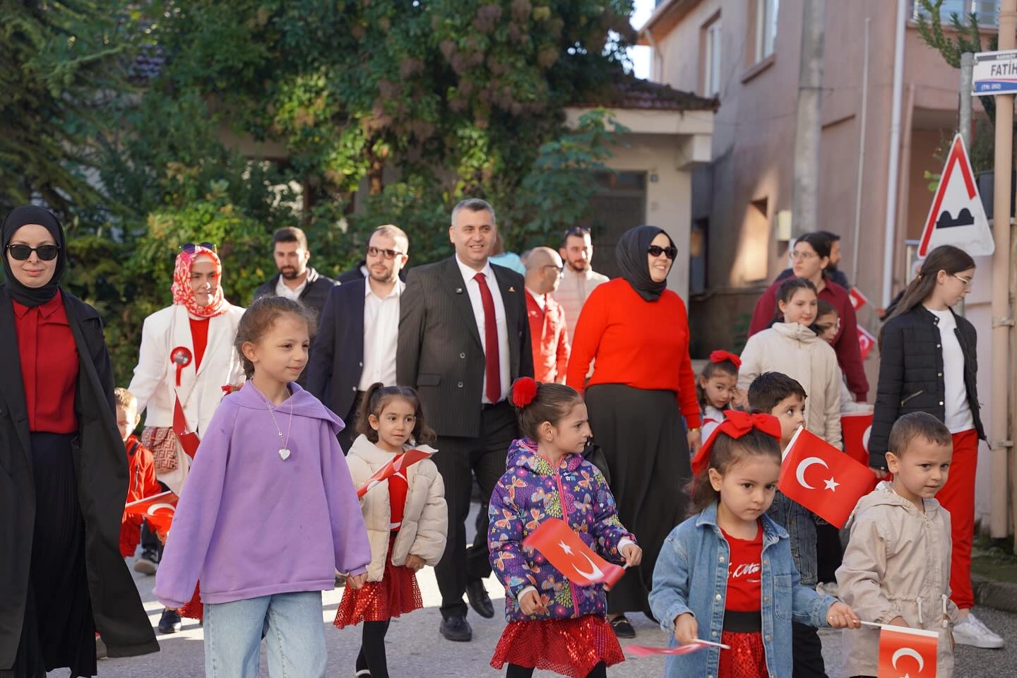 Cumhuriyet’in 102. yılı dolayısıyla büyük bir coşkuyla gerçekleştirilen etkinlikte öğrenciler, öğretmenler ve veliler bayram heyecanını doyasıya yaşadı.