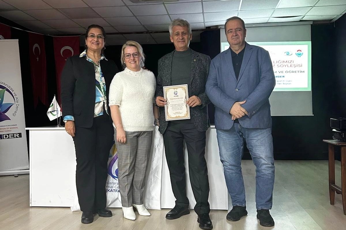Öğrenme sürecinden önce eğitimin ilk basamak olarak mutlaka tamamlanması gerektiğinin altını çizen Özcimder, eğitimin aileden alınan temel değerlerle başladığını, ardından toplum ve çevrenin etkisiyle şekillendiğini, öğretimin ise bu sağlam temelin arkasından gelmesi gereken akademik bir süreç olduğunu belirtti. Dünyadaki farklı eğitim sistemlerinden ve toplumsal yapılardan çarpıcı örnekler vererek sunumunu tamamlayan Dr. Recep Özcimder, katılımcılara ufuk açıcı bir perspektif sundu. İlgiyle takip edilen söyleşi, soru-cevap bölümünün ardından KATFA-DER Başkanı Nurten Anıl'ın Dr. Recep Özcimder'e teşekkür belgesi takdim etmesiyle sona erdi.