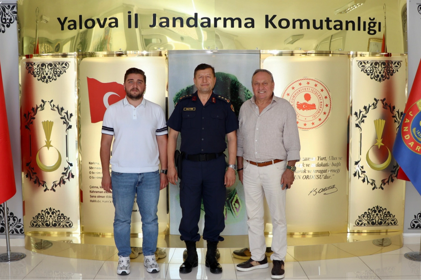 Yalova Kent Konseyi Başkanı Kenan Engin, beraberinde Gençlik Meclisi Başkanı Samet Yalınkılıç ile birlikte Yalova İl Jandarma Alay Komutanı Kıdemli Albay Ercan Altın’ı makamında ziyaret etti.