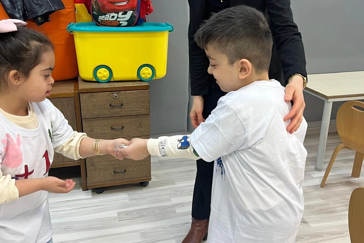 Küçük ama yürekleri büyük çocuklar, birbirlerine sevgiyle dokunarak farkındalığın en güzel halini gösterdiler.