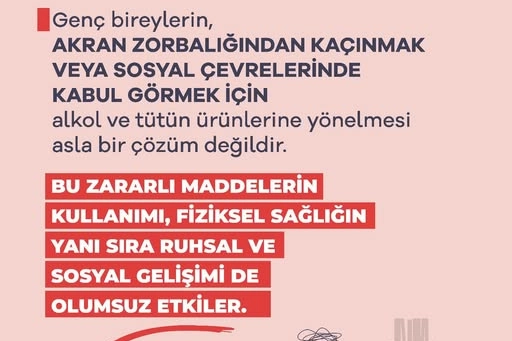 Müdürlük, özellikle gençlerin akran zorbalığından kaçınmak veya sosyal çevrelerinde kabul görmek amacıyla alkol ve tütün ürünlerine yönelmesinin asla bir çözüm olmadığını vurguladı. Bu davranışın, kısa vadede hissedilen sosyal baskıyı hafifletmek yerine, uzun vadede çok daha büyük sorunlara yol açabileceği belirtildi. Gençlerin bu tür zararlı maddelere yönelmeden önce sağlıklı başa çıkma yöntemleri ve destek mekanizmaları aramaları gerektiğinin altı çizildi.