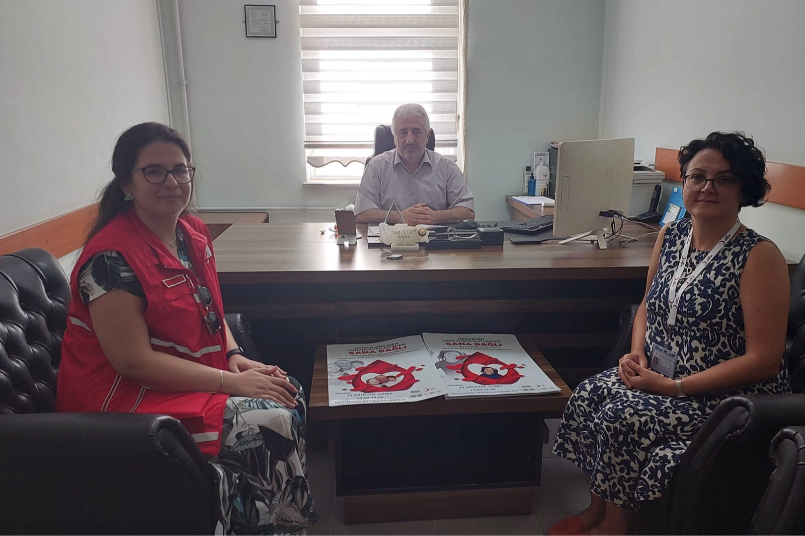 Kızılay Çiftlikköy Kan Merkezi Koordinatörü Oya Koçak ve Sevda Hazal Ak, düzenlenecek olan kan bağışı kampanyası hakkında Çiftlikköy İlçe Müftüsü Yusuf Ulusoy'u makamında ziyaret ederek bilgi verdiler. Kampanyanın 23 Ağustos Cuma günü saat 13.00-22.00 arasında Çiftlikköy Kapalı Pazar Yeri'nde gerçekleştirileceği belirten Kızılay Çiftlikköy Kan Merkezi Koordinatörü Oya Koçak ve Sevda Hazal Ak kan stoklarının her zaman talepleri karşılayacak durumda tutulmasının önemine vurgu yaptılar. Bu anlamda kan bağışı kampanyalarına halkın daha fazla ilgi göstermesi gerektiğini ifade eden Koçak ve Ak, Çiftlikköy Müftülüğü’nün de bu anlamda halka çağrıda bulunmasının etkili olacağının altını çizdiler.