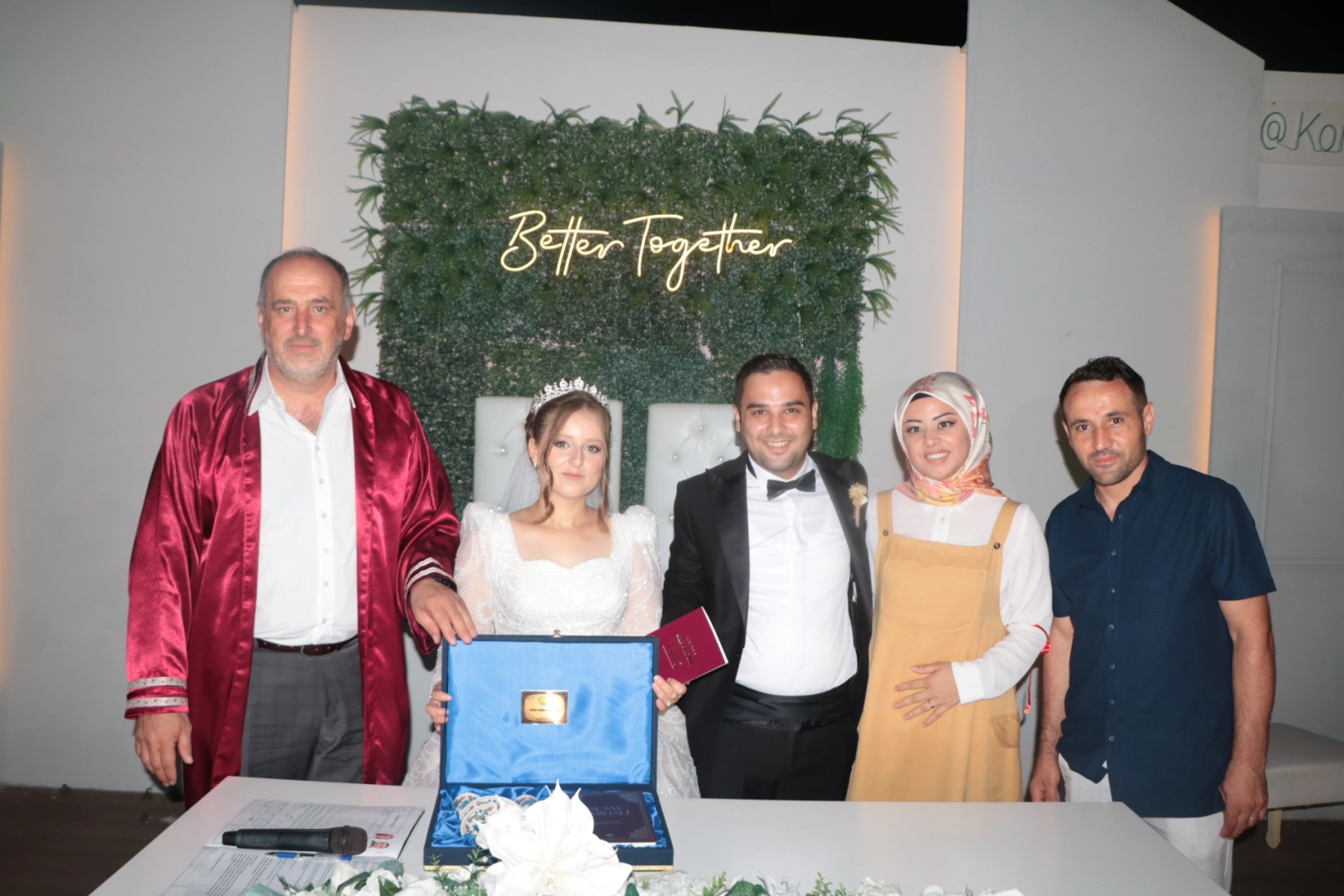 Yeni evlenen çiftlerin nikah akdini gerçekleştirmeyi sürdüren Çınarcık Belediye Başkanı Numan Soyer genç çifte güzel temennilerde bulundu. Başkan Soyer, Demir ile Er ailelerinin evlatları Merve ve Samet’in nikah akdini gerçekleştirdi. Soyer, birbirini seven çifti tebrik ederek, "Bu güzel birlikteliğinizin sizlere sağlık, sıhhat, huzur ve bir ömür boyu mutluluk getirmesini dilerim" diyerek; yeni çifte hediyelerini takdim etti.