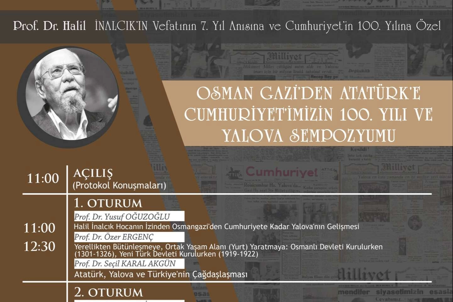 27 Temmuz'da saat 11:00'de Yalova İl Özel İdaresi Konferans Salonu'nda gerçekleştirilecek olan sempozyum, Türkiye Cumhuriyeti'nin 100. yıl kutlamalarına özel olarak düzenleniyor ve aynı zamanda sevgiyle anılan akademisyen Prof. Dr. Halil İnalcık'a ithaf ediliyor.