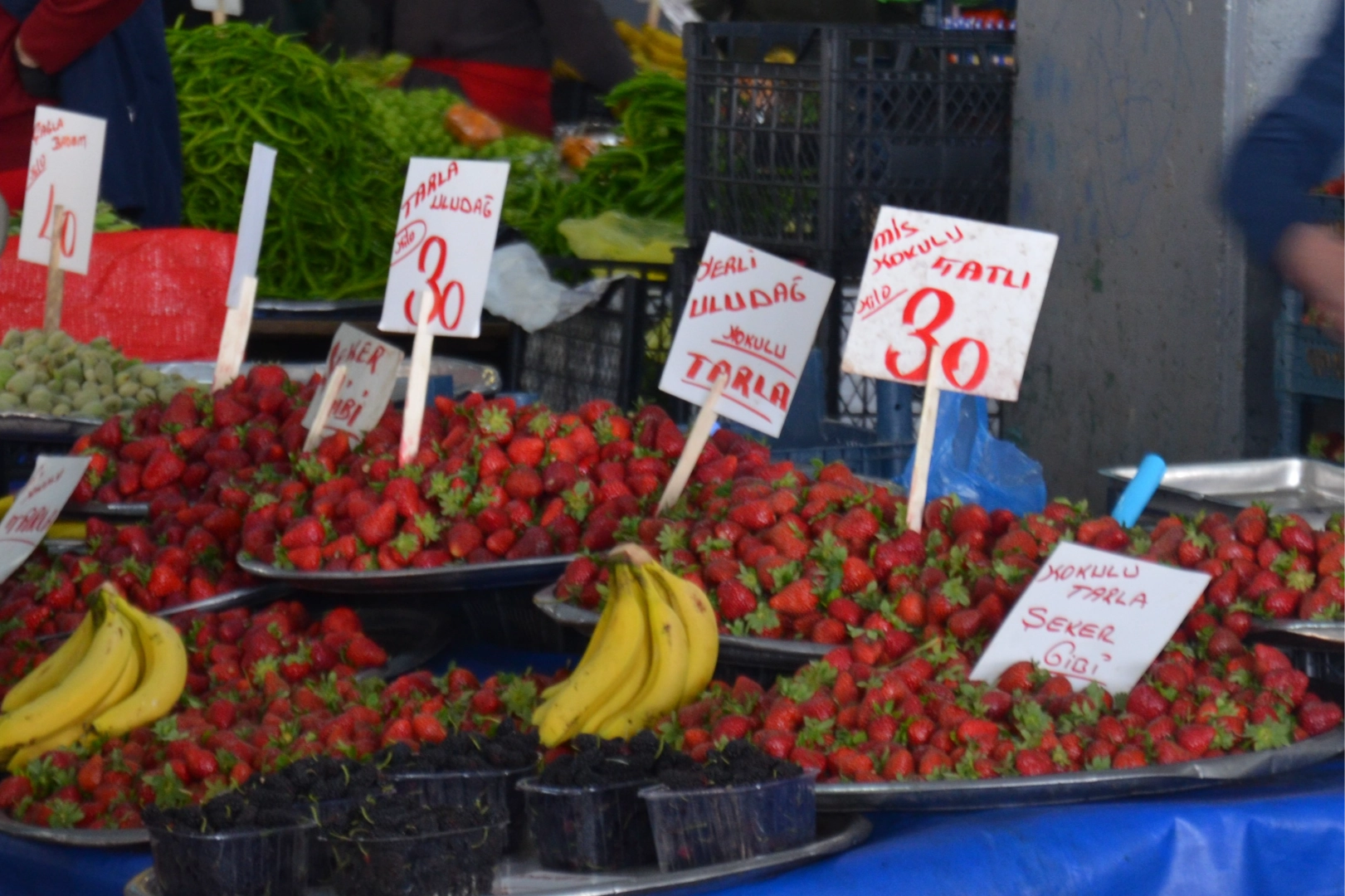 Haftanın her pazartesi, çarşamba ve cumartesi günleri Yalova Kapalı Pazaryeri’nde kurulan meyve ve sebze pazarında satışa sunulan en ucuz ürünün 10 TL olduğu gözlemlendi. Pazarcı esnafı, artan üretim maliyetlerinden dolayı fiyatların yükseldiğini ifade etti. Mevsimlik meyvelerin satışını yapan pazarcı esnafı Mehmet, vatandaşların fiyatlardan şikayetçi olduğunu belirterek, “İnsanlar fiyat soruyor gidiyor. Meyve satışları çok düştü. İnsanların alım gücü yok. Sabah bir abla ile çocuğuna çok üzüldüm. Çocuk çilek istedi, abla ‘O kadar paramız yok, başka zaman’ diyerek çocuğunu götürdü. Böyle durumlarda ne yapacağımızı bilmiyoruz.” şeklinde konuştu. Alışveriş yapmak için pazara gelen bir vatandaş, gazetemize yaptığı açıklamada, “Eskiden patatesi, soğanı 10 kilo alırdım. Şimdi 1 kilo alırken düşünüyorum. Çok pahalı olduğu için meyve alamıyoruz. Ucuza satılanlar da çürük çarık.” dedi. Yalova Kapalı Pazaryeri tezgahlarındaki ürünlerin kilo fiyatları şu şekilde; muz 27 TL, elma 10 TL, çilek 35 TL, armut 15 TL, karpuz 25 TL, portakal 15 TL, limon 12 TL, domates 26 TL, patlıcan 20 TL, salatalık 10 TL, fasulye 30 TL, patates 20 TL, soğan 22 TL.