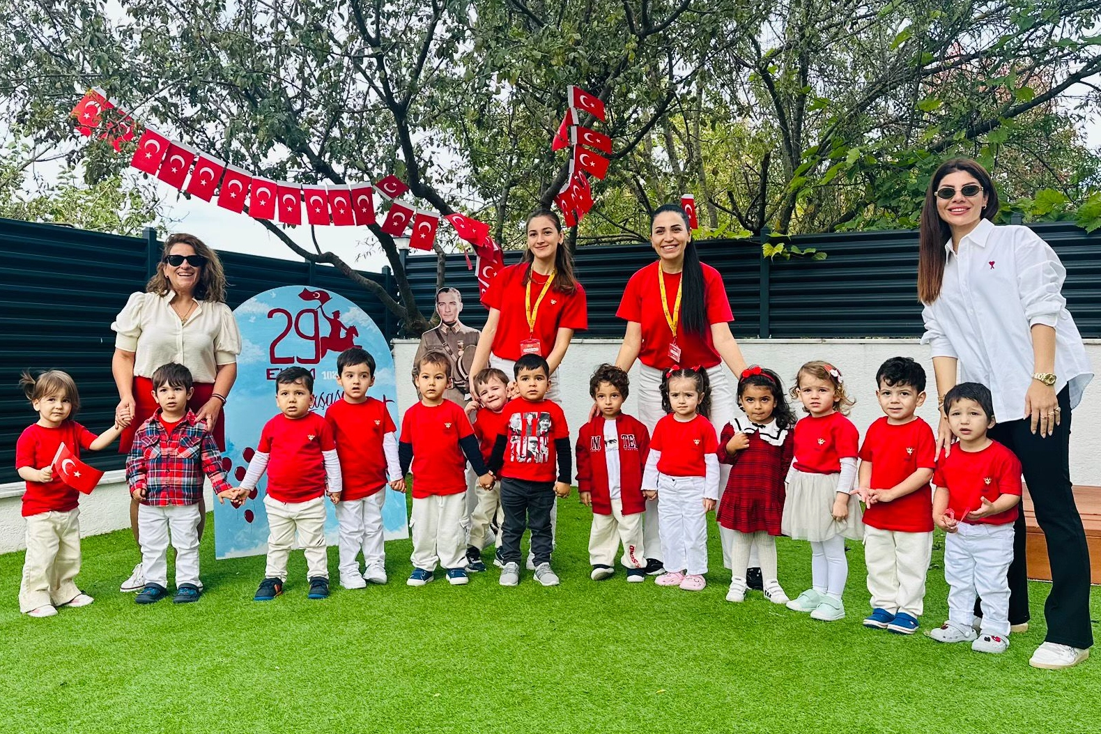Öğrenciler, öğretmenler ve velilerin katılımıyla gerçekleşen kutlamalarda Cumhuriyet’in anlamı ve önemi üzerine etkinlikler yapıldı, minikler Atatürk’ün mirasını ve Cumhuriyet’in kazanımlarını öğrenmenin mutluluğunu yaşadılar.