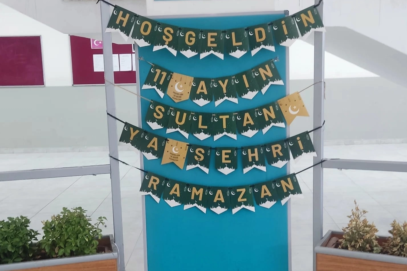 Yalova Adnan Menderes Mesleki ve Teknik Anadolu Lisesi öğrencileri, 11 ayın sultanı ramazan ayı öncesi okullarını ramazan temalı süslemelerle donattı.