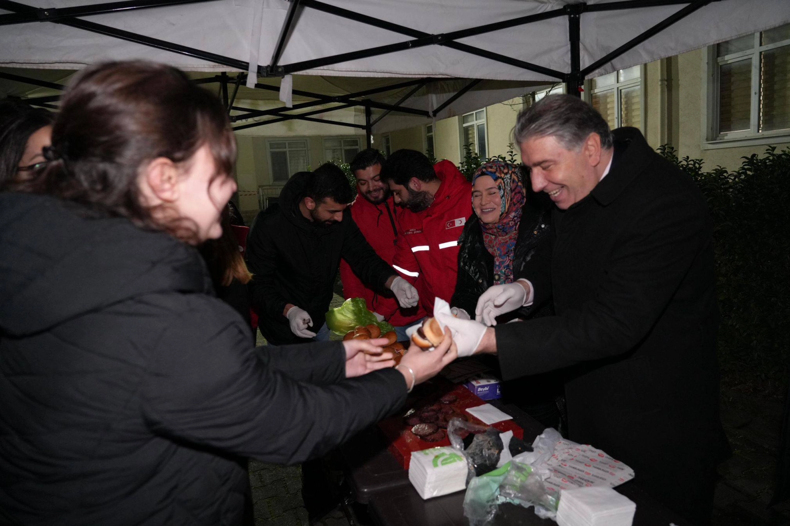 Yalova Üniversitesi Rektörü Prof. Dr. Mehmet Bahçekapılı, Kızılay Yalova Şubesi ile birlikte gece saatlerinde kütüphanede ders çalışan öğrencilere sucuk ekmek ikram etti.