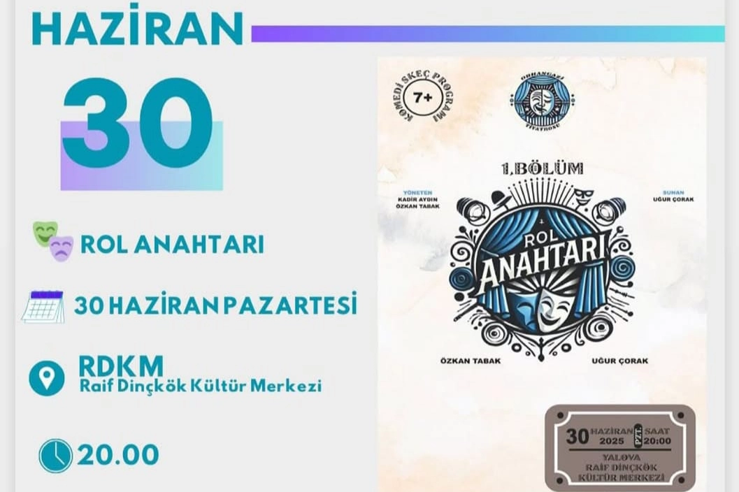 Gösteri, 30 Haziran Pazartesi akşamı saat 20.00'de başlayacak. Yalova Raif Dinçkök Kültür Merkezi'nde gerçekleşecek olan bu tiyatro etkinliği, şehrin kültür sanat takvimine önemli bir katkı sağlayacak ve tiyatroseverlere unutulmaz bir akşam yaşatacak.