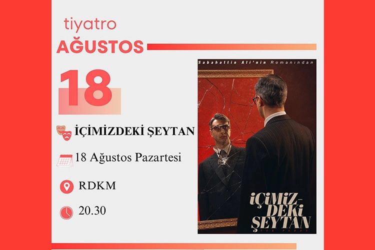 Etkinlik Detayları: Oyun: İçimizdeki Şeytan (Sabahattin Ali'nin romanından uyarlama) Tarih: 18 Ağustos Pazartesi Yer: RDKM (Raif Dinçkök Kültür Merkezi), Yalova Saat: 20.30 Bilet Ücreti: 300 TL’den başlıyor