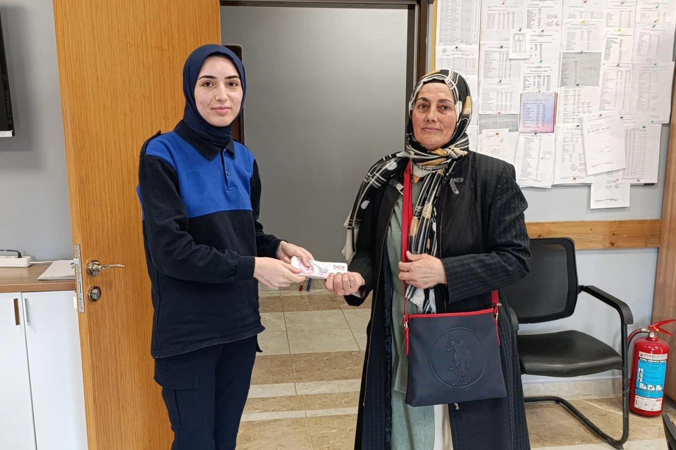 PARAYI TESLİM ALARAK TEŞEKKÜR ETTİZabıta ekipleri yaptıkları araştırma ve inceleme sonucunda paranın Nazlı Beşkanat isimli bir vatandaşa ait olduğunu tespit etti ve durumu vatandaşa bildirdi. Belediye binasına gelen Beşkanat, kendisine ait parayı teslim alırken zabıta ekipleri ve duyarlı vatandaşa teşekkür etti.