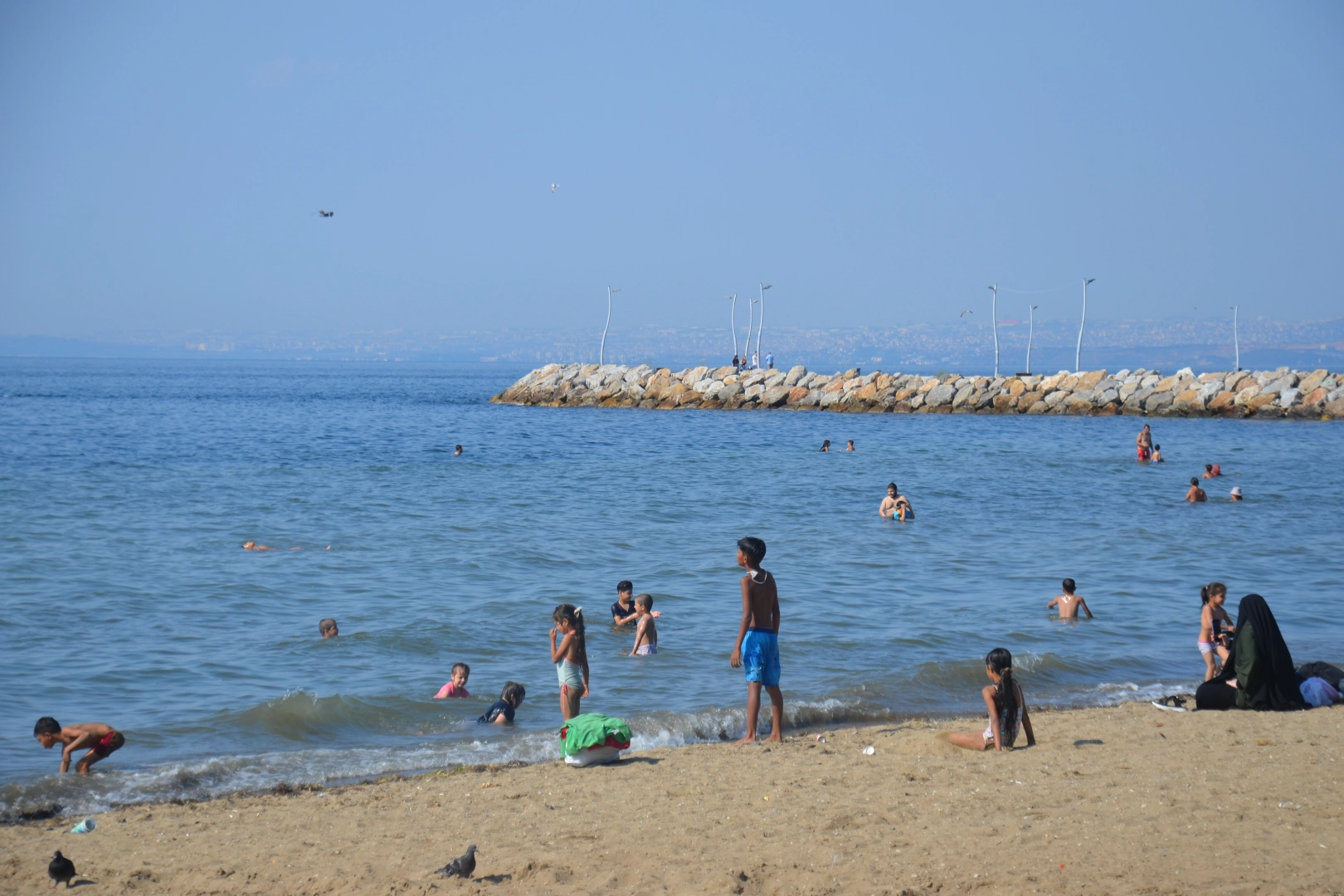 Halk plajına torunları ile birlikte gelen Mahmut Korkmaz, “Hava dayanılır gibi değil. Çocuklar da evde sıkıldı. Serinlemek için hep beraber denize geldik. Sıcaklar daha da artacak diyorlar. Nasıl dayanacağız bilmiyorum. Bu havada dışarıda çalışanlara Allah yardım etsin.” şeklinde konuştu.